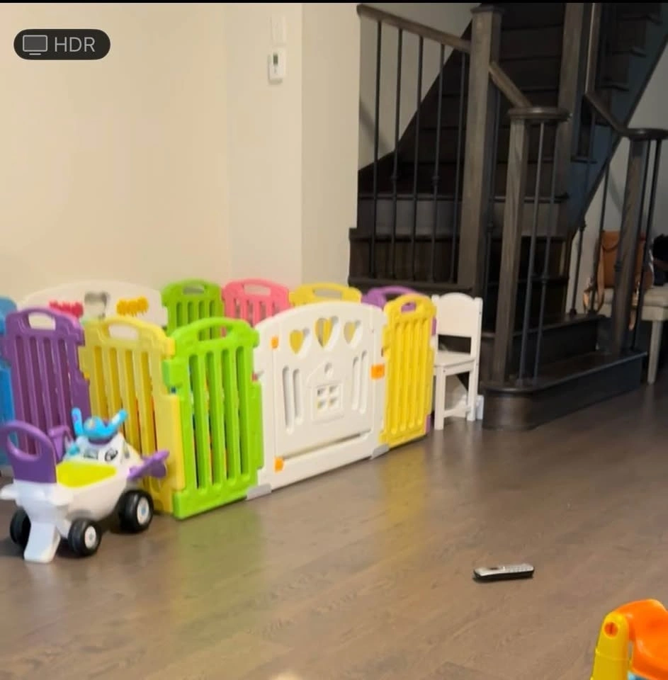 Kids activity centre safety play yard for home indoor or outdoor use. Features 14 panels. Like new condition from a smoke-free, pet-free home.
