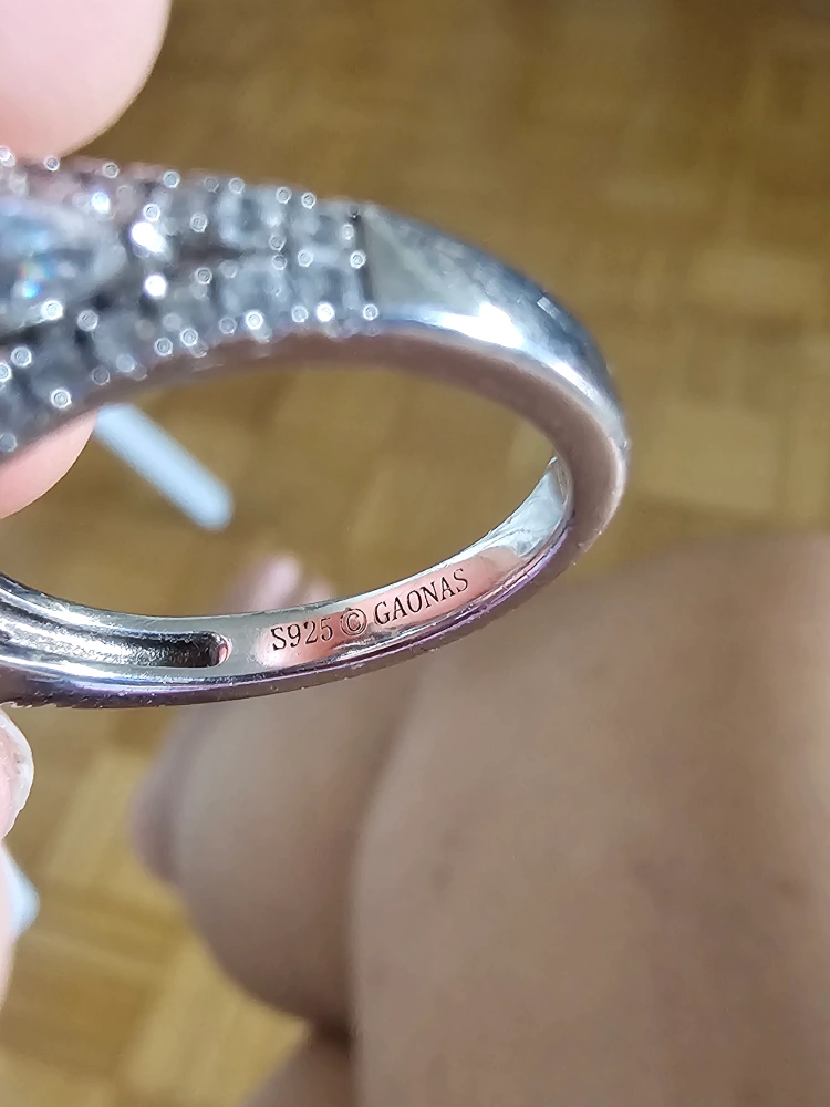 Selling a beautiful GAONAS ring. It's size 7 and features a 2ct stone. The ring is marked with S925, indicating the metal is sterling silver.