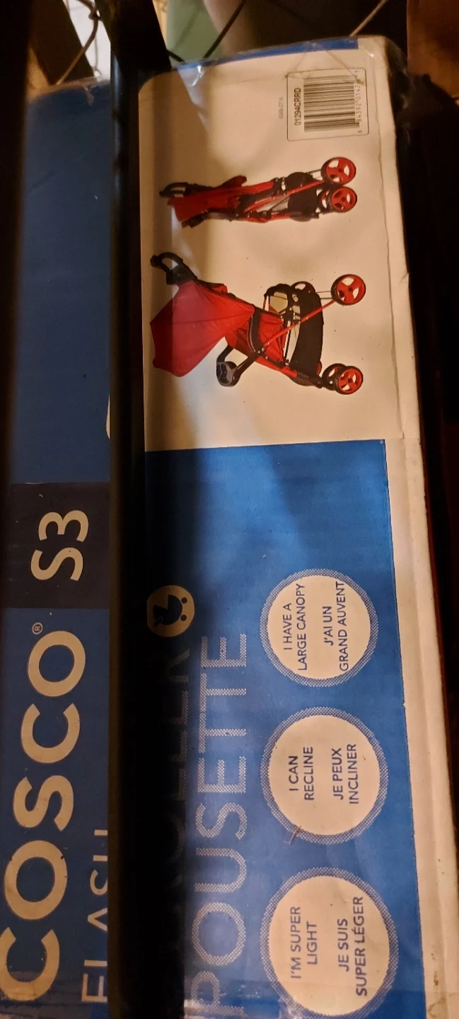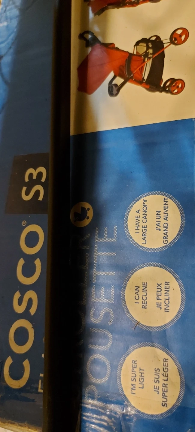 This red Cosco S3 stroller is super light and has a large canopy. It can also recline for your little one's comfort. It's great for on-the-go parents needing a portable option.
