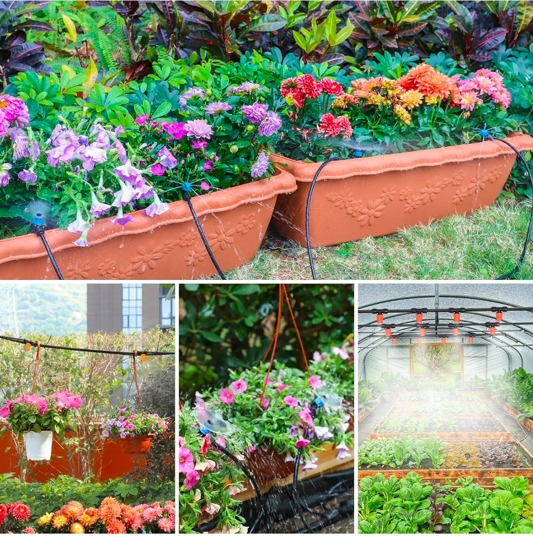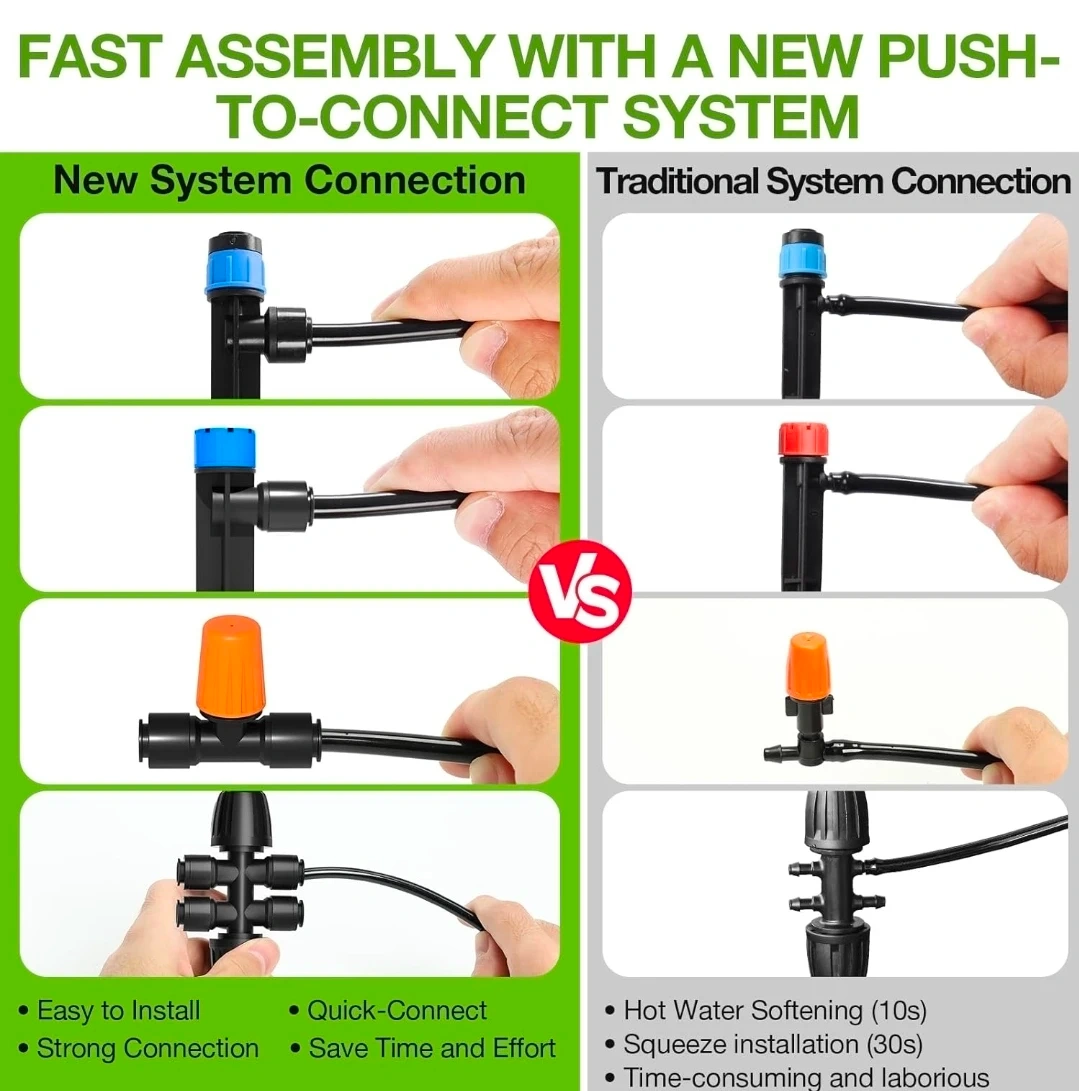 This automatic drip irrigation system from MIXC is great for watering gardens. It features a fast push-to-connect system for easy assembly. This kit includes multiple sprayer types and ways to split the lines.