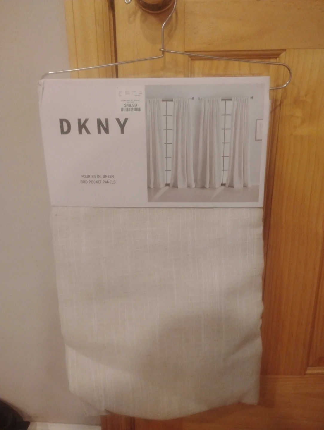 DKNY sheer rod pocket curtain panels. They are 84 inches long. Comes as a set of four panels.