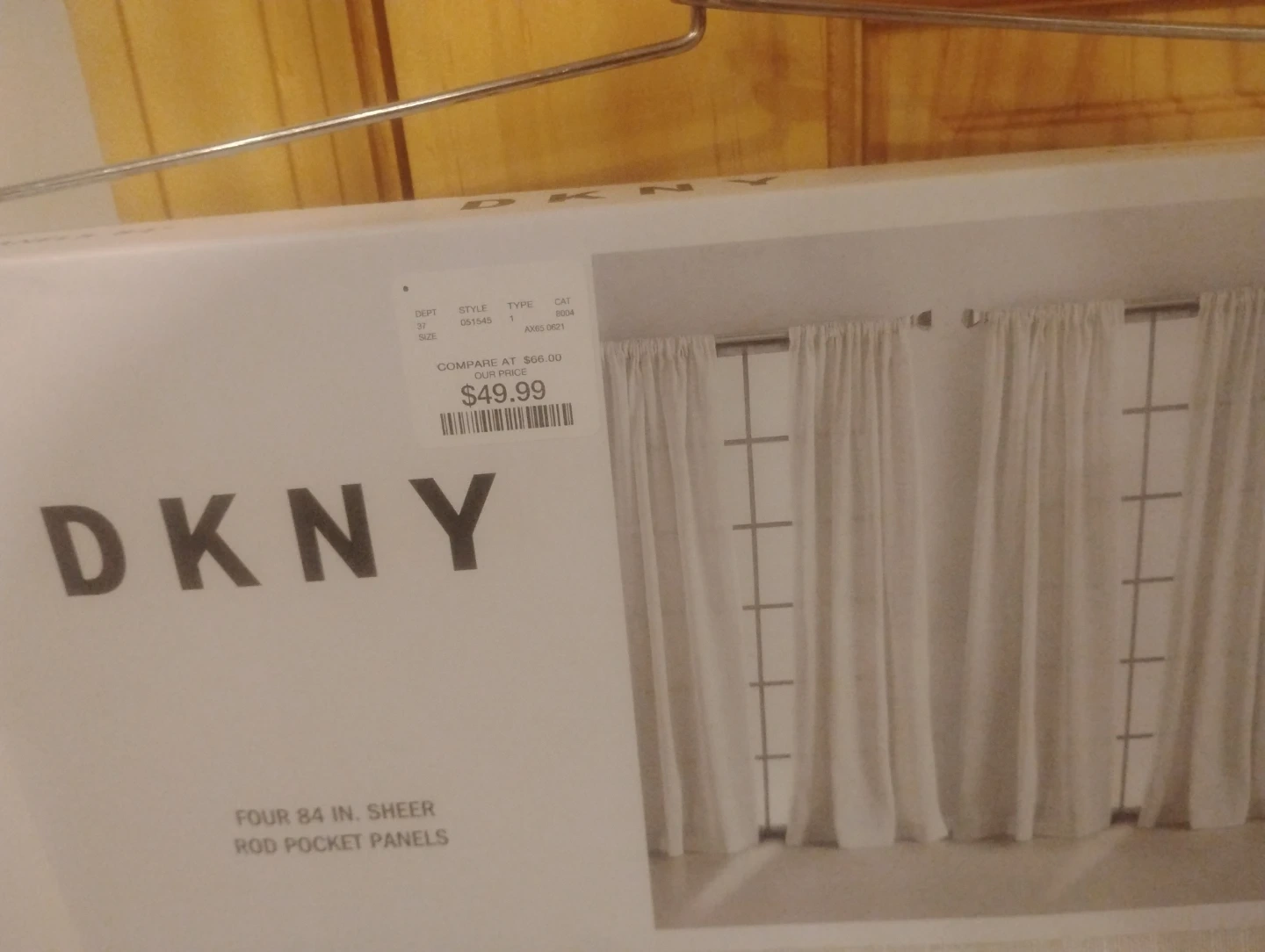 DKNY sheer rod pocket curtain panels. They are 84 inches long. Comes as a set of four panels.