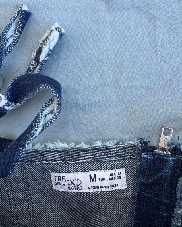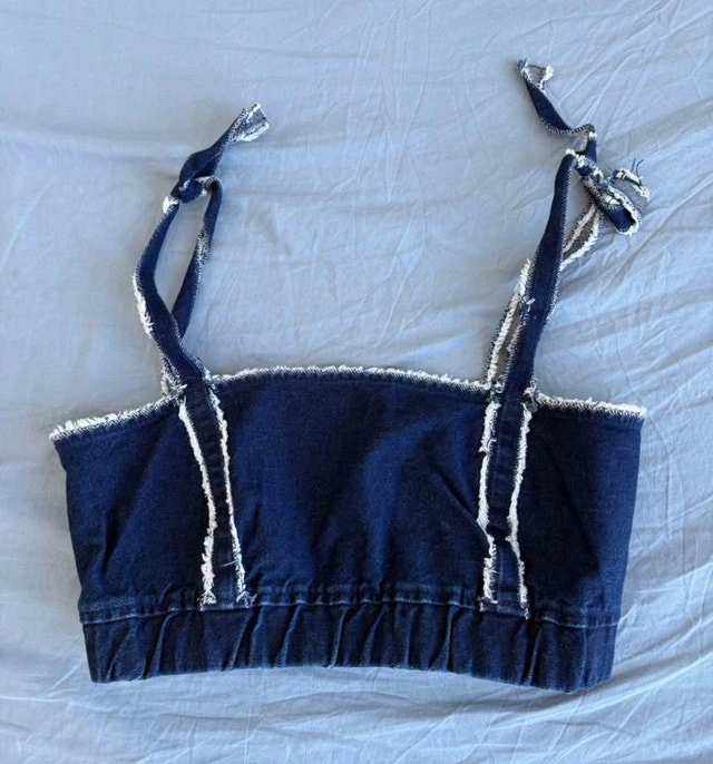 This is a cute TRF denim crop top, perfect for summer! The garment is in good used condition and comes from a smoke-free home. Size: M, Material: Denim. If the ad is still up, it's still available.