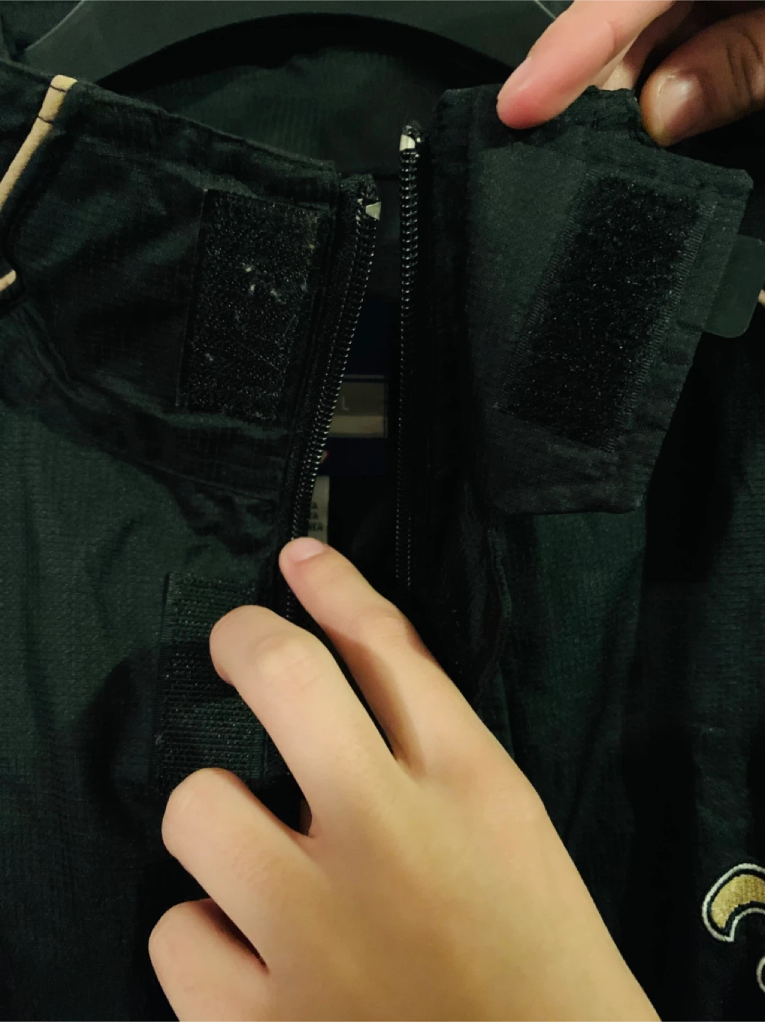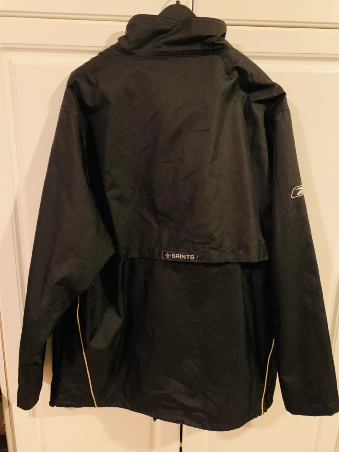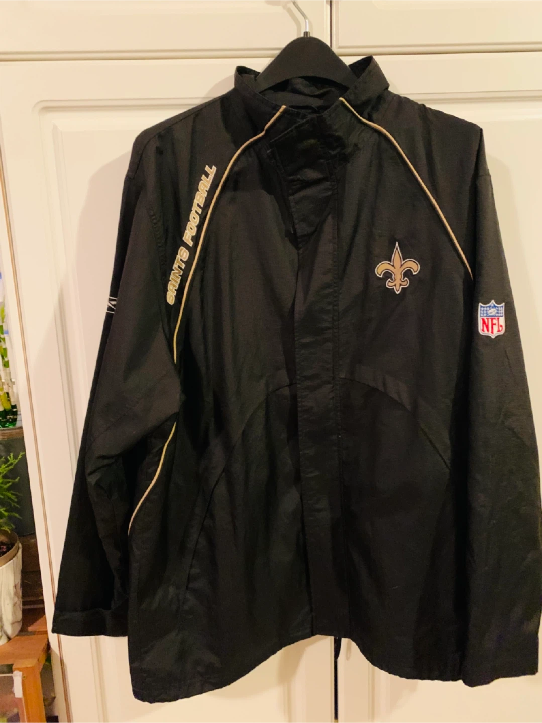 Men Windbreaker NFL New Orleans Saints Jacket size large. Almost like new condition. Zipper and Velcro. Selling for $35 CAD FIRM. Smoke Free Home.
