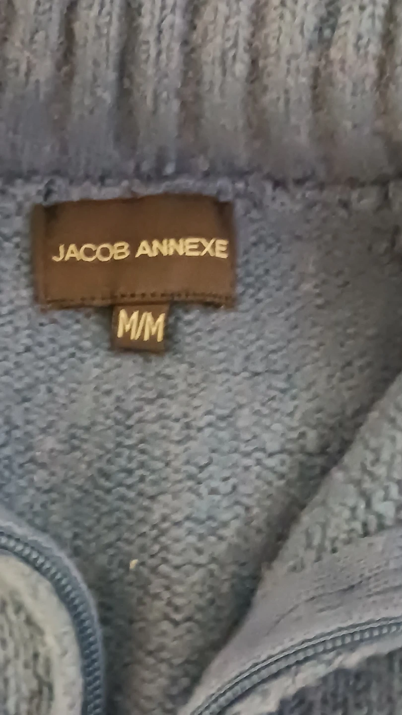 Buy & SellJacob Annexe Blue SweaterJacob Annexe Blue Sweater$24Jacob Annexe quarter-zip sweater with a front kangaroo pocket. It's a size medium. The knit material is soft and comfortable. Never worn! ConditionLike newSizeMedium WHERE TO MEETInternational Village MallView MapSELLERverifiedChristinaDowntown1000+125 reviews0 chats·0 favorites·1 viewsSEND CHAT TO SELLERHi Christina! I’m interested in your listing.Hi Christina! I’m interested in your listing.Get the Karrot app to chatSign In to chat