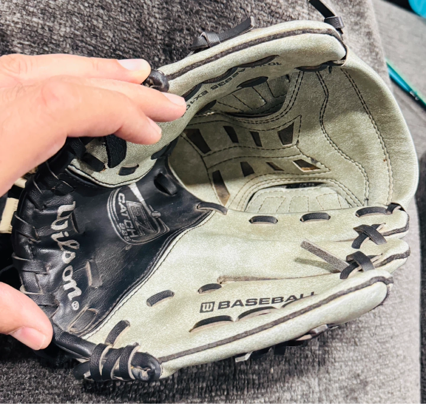 This is a 10 1/2 inch Wilson baseball glove. It's labelled "EZ Catch". Made of leather.