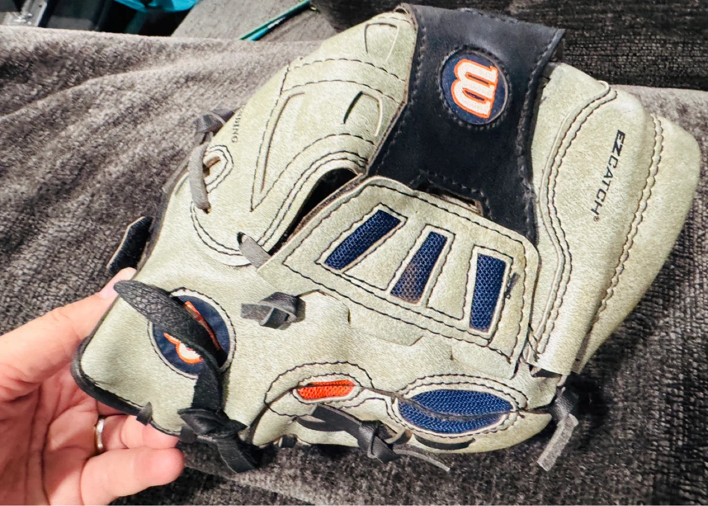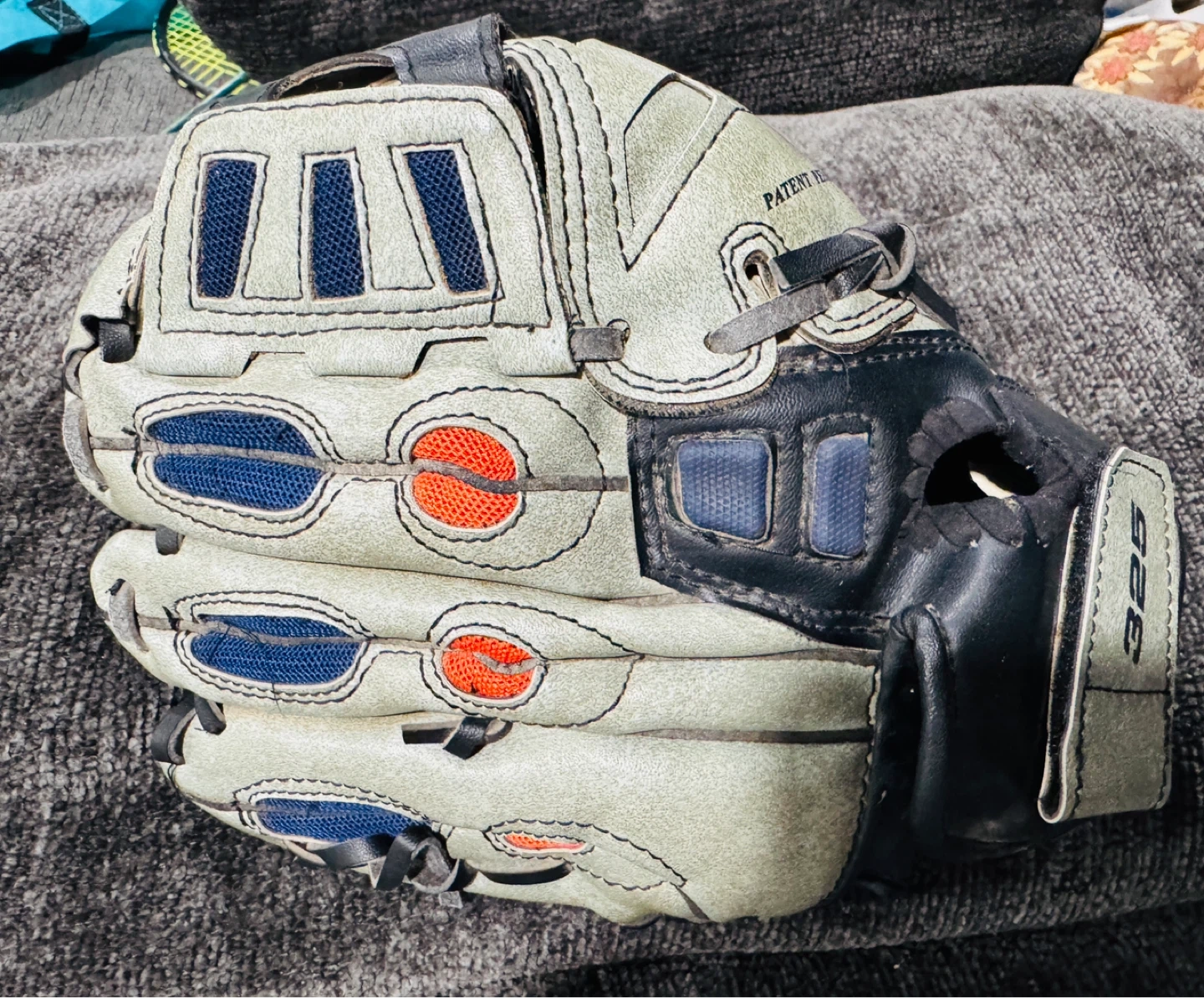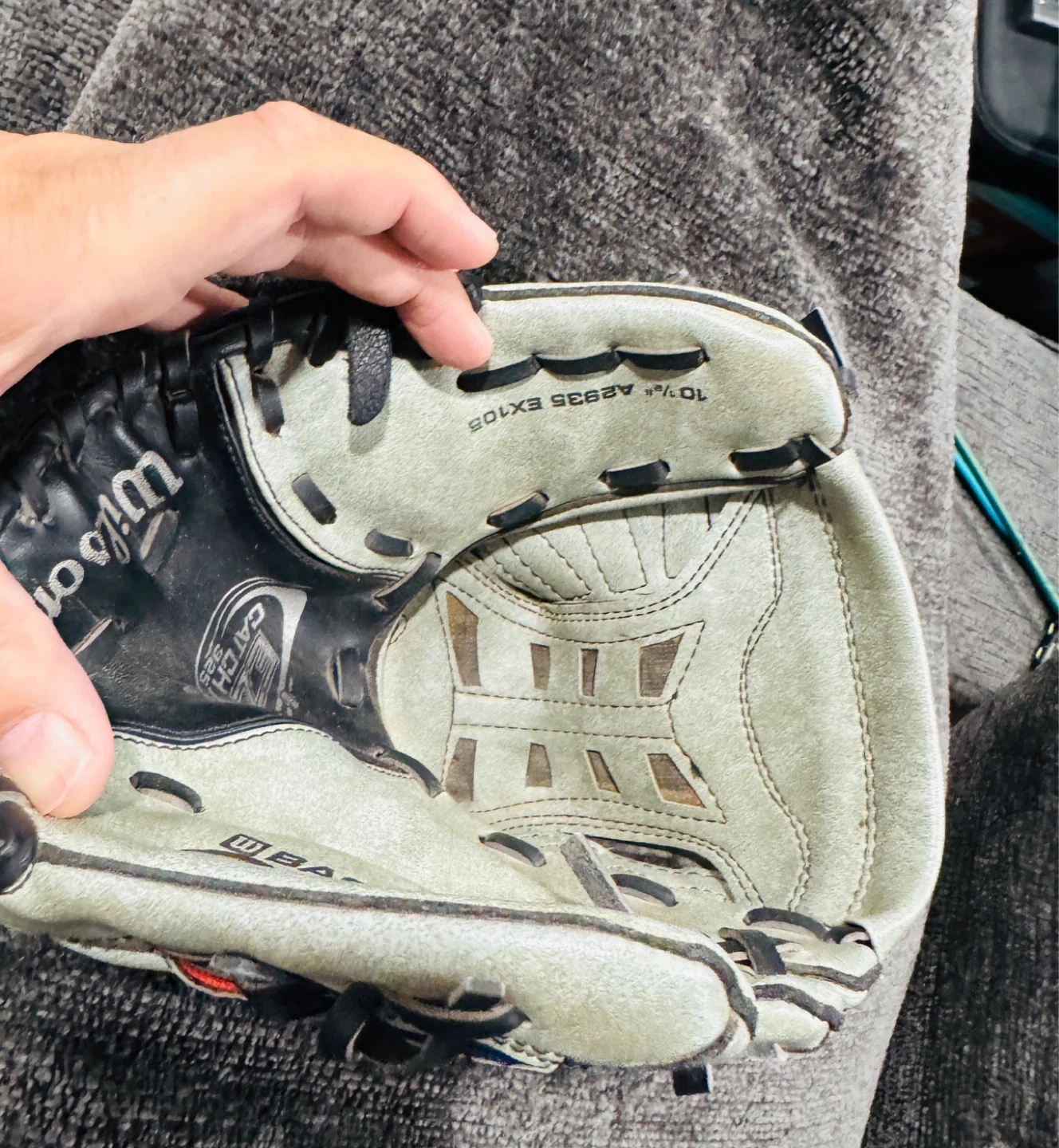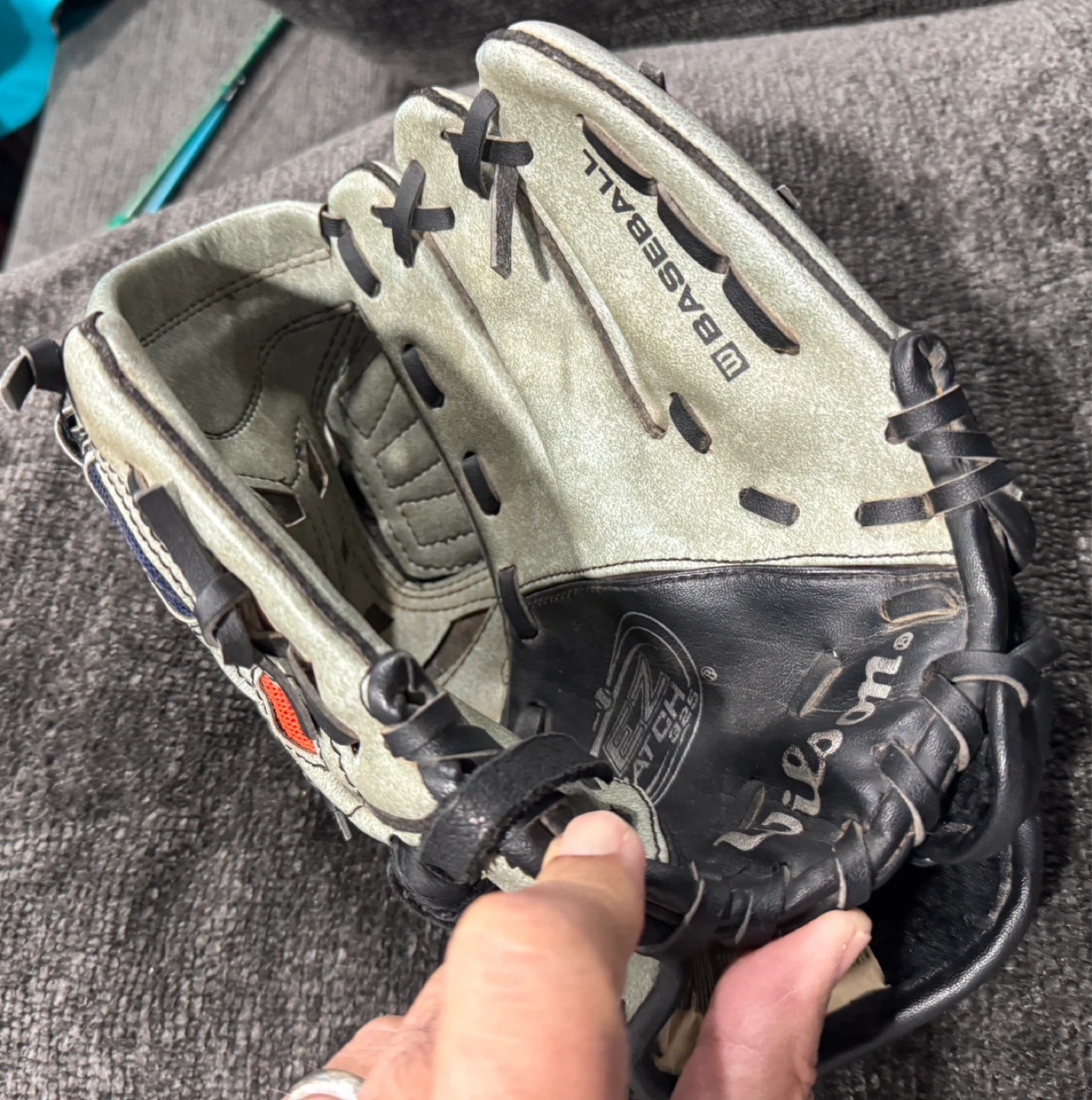 This is a 10 1/2 inch Wilson baseball glove. It's labelled "EZ Catch". Made of leather.