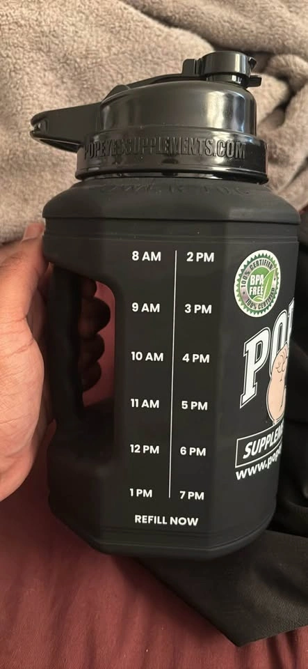 Popeye's Supplements Hydration Jug Water Bottle with Time Marker