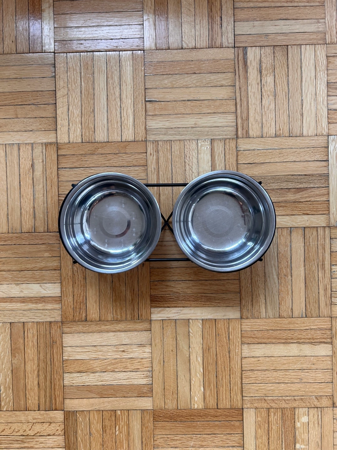 - Pair of metal feeding bowls w/ stand