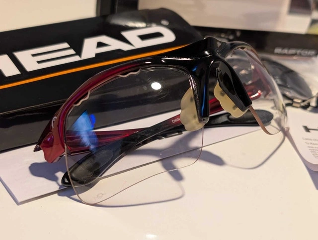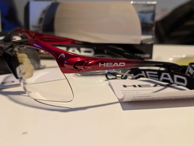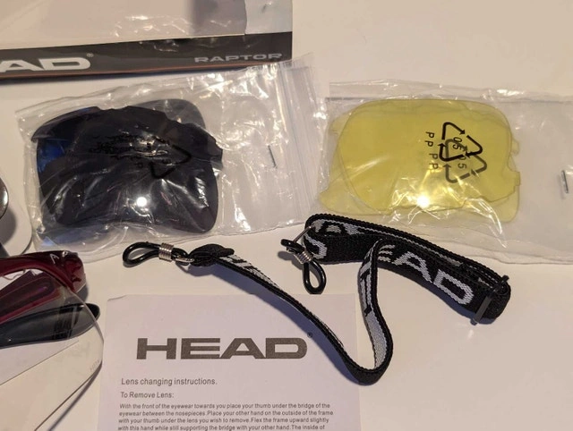Get ready to elevate your game with these like-new HEAD Raptor sports glasses, perfect for any athletic endeavour! These glasses feature interchangeable lenses, including clear, yellow, and dark lenses, ensuring optimal vision in various lighting conditions. The set also includes a HEAD-branded lanyard and lens changing instructions, all in the original packaging.