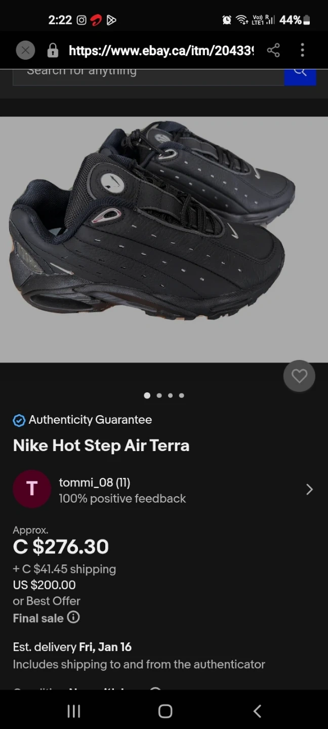 Selling a pair of Nike Hot Step Air Terra in black, size 8 US. They show some signs of wear but are still in good condition for everyday use