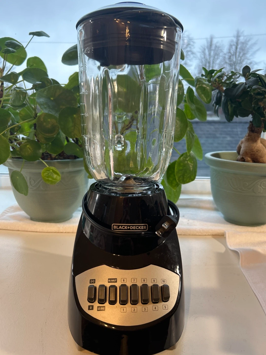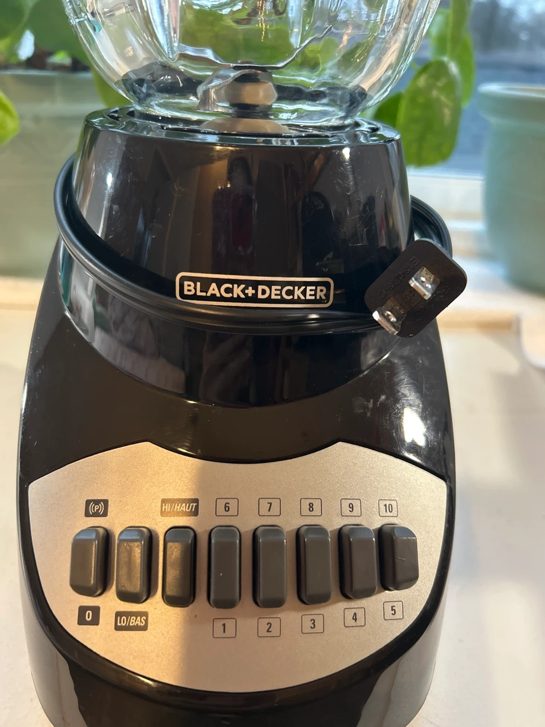 Selling a Black+Decker blender in good condition. It features a glass pitcher with cup and ounce measurements. The base has multiple speed settings from 0 to 10. Perfect for making smoothies or other blended drinks!