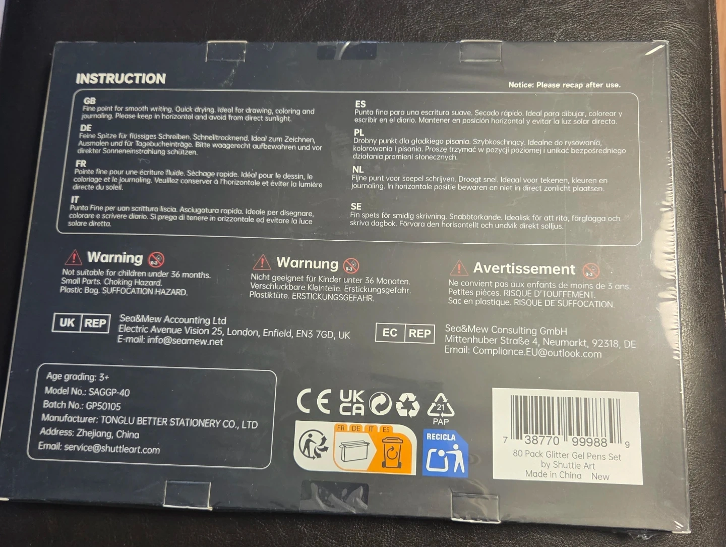 This is an 80-pack set of Shuttle Art gel pens, featuring all glitter colors for smooth drawing. Each pen has a bullet tip of 0.8-1.0mm. Includes 40 gel pens and 40 refills.