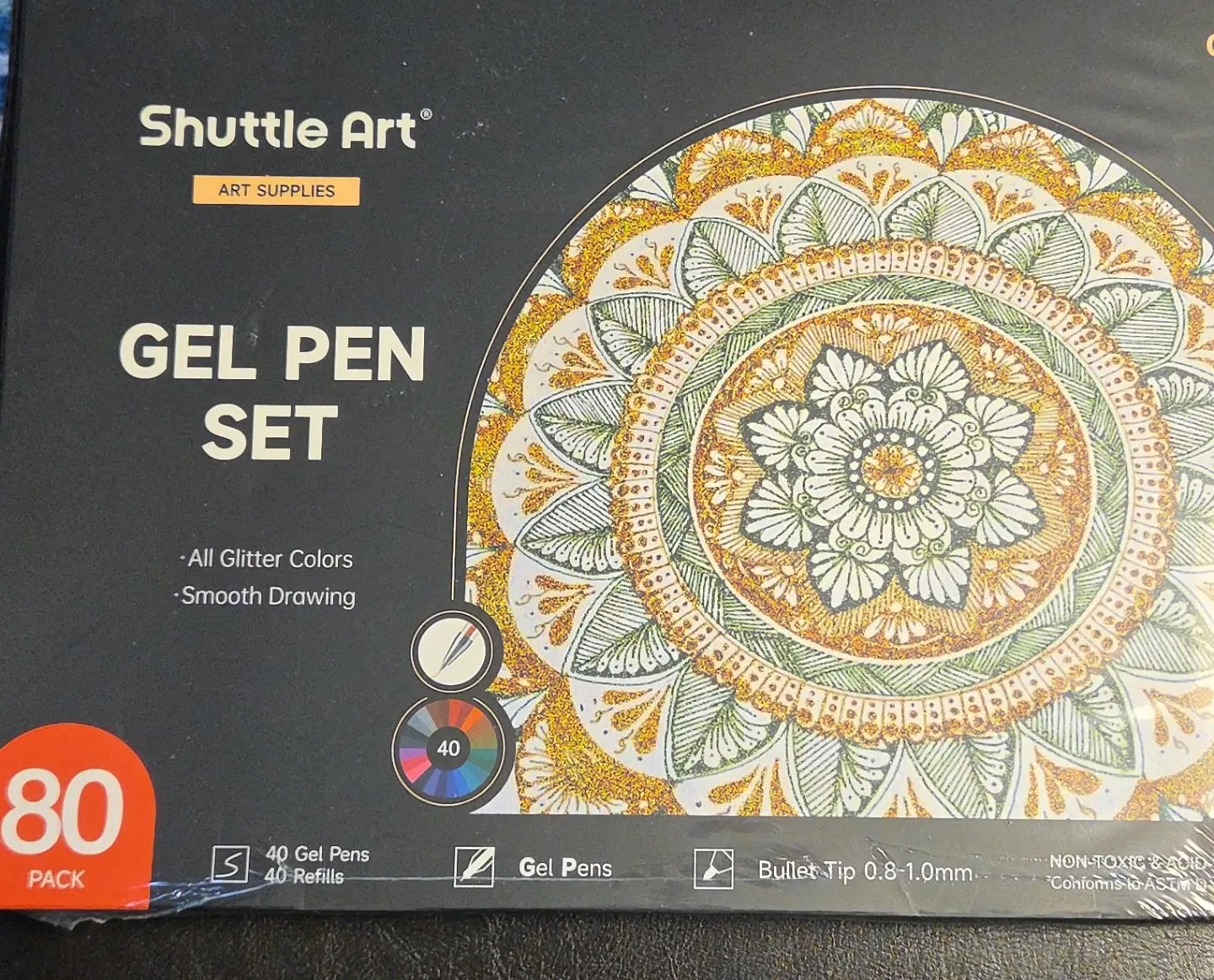 This is an 80-pack set of Shuttle Art gel pens, featuring all glitter colors for smooth drawing. Each pen has a bullet tip of 0.8-1.0mm. Includes 40 gel pens and 40 refills.