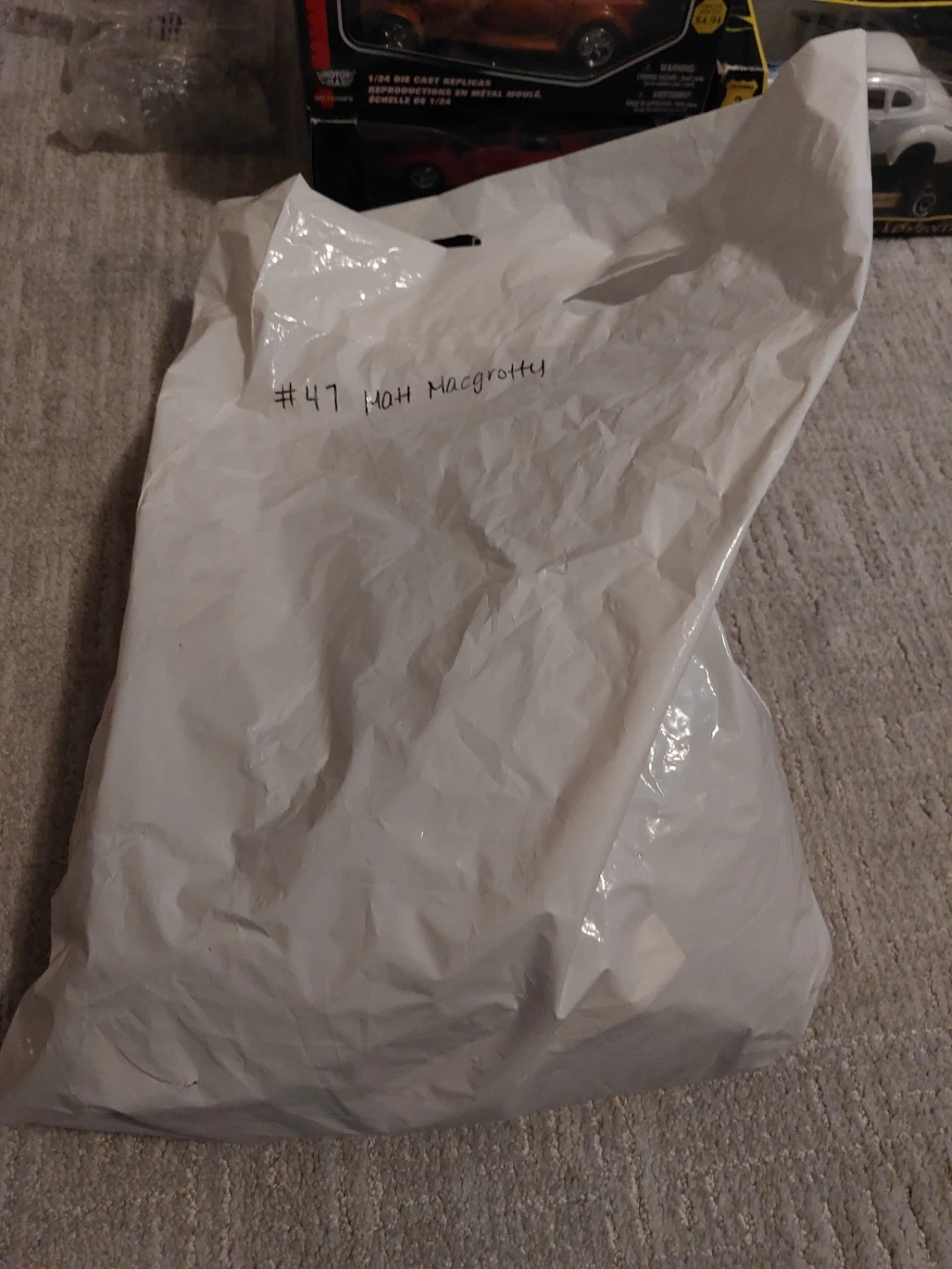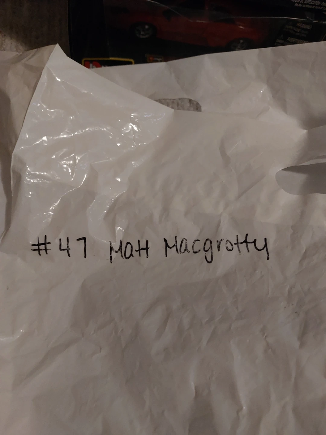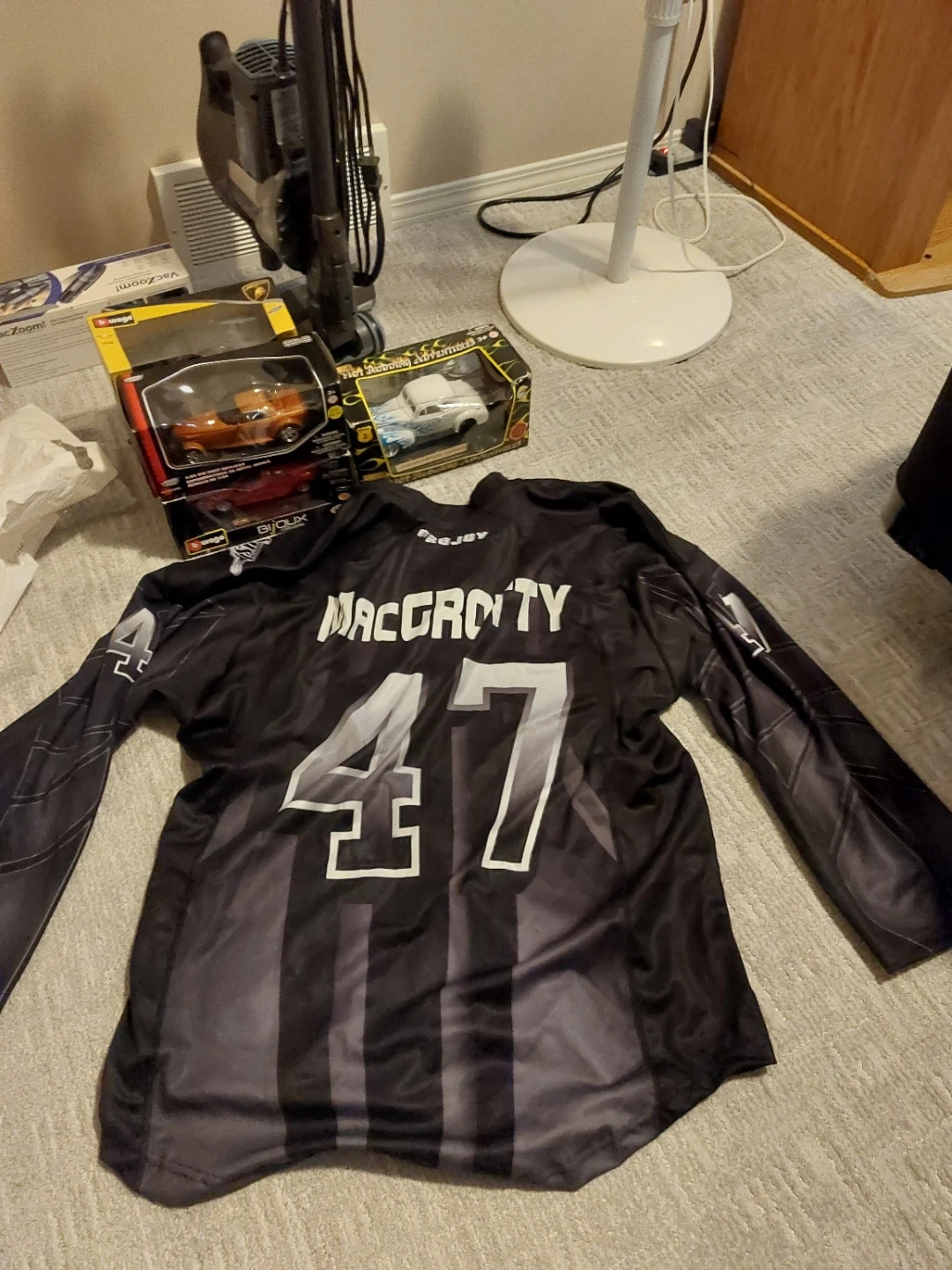This is a PROJOY jersey with MacCrotity and the number 47 printed on it. It's black with white lettering and accents. A white plastic bag with '#47 Matt MacCrotty' written on it is included. This is the only one 1of1 special jersey that was auctioned off for charity and I won highest bid it is signed on the back and has never been worn