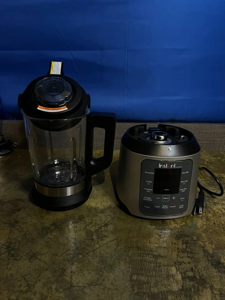 Selling an Instant Pot Ace Nova High-Speed Cooking Blender. Condition is like new, aesthetically perfect with a crystal clean glass pitcher showing no wear. This blender has a built-in heating element, allowing it to blend cold smoothies and cook hot soups, purees, and sauces directly in the pitcher. Features one-touch buttons for Smoothie, Crushed Ice, Frozen Desserts, Nut/Oat Milk, Soy Milk, Rice Milk, Purée, and Soup. The heavy-duty glass pitcher doesn't absorb odors or stain like plastic. Includes the blender base, glass pitcher, and lid. Pick up in Gastown.