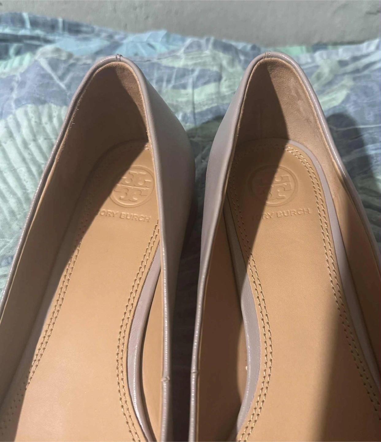 Tory Burch Chelsea Heeled Leather Ballet Flats - size 8 in grey color for sale! These shoes are in excellent used condition and still look new, except for some wear on the bottom sole.