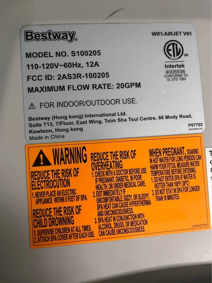 Functional Bestway spa pump and heater unit. This S100205 model is for AirJet inflatable spas. Has Wi-Fi capability. Works as a pump, heater, and filter for your hot tub. All connections are included.
