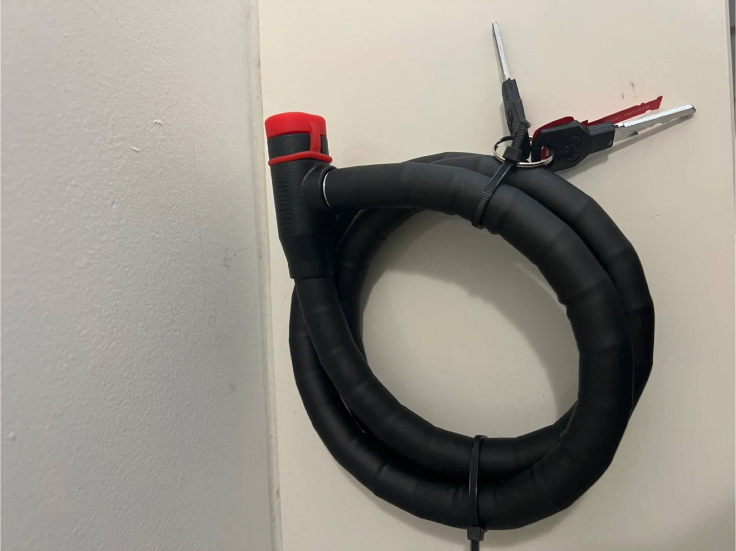 This is a Bell Ballistic 500 heavy-duty cable lock. It's 4ft (1.2 m) long and 18mm thick. The cable is made of HD Steel and has a security level of 3.