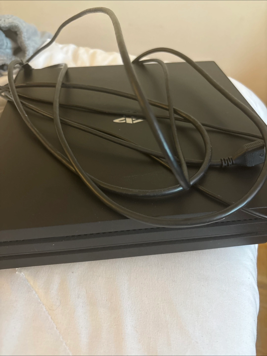 Black console, power cord included. Good condition. Controller charger included. No controller included (the one that came with it has stick drift you’d have to fix that if you want it.)
