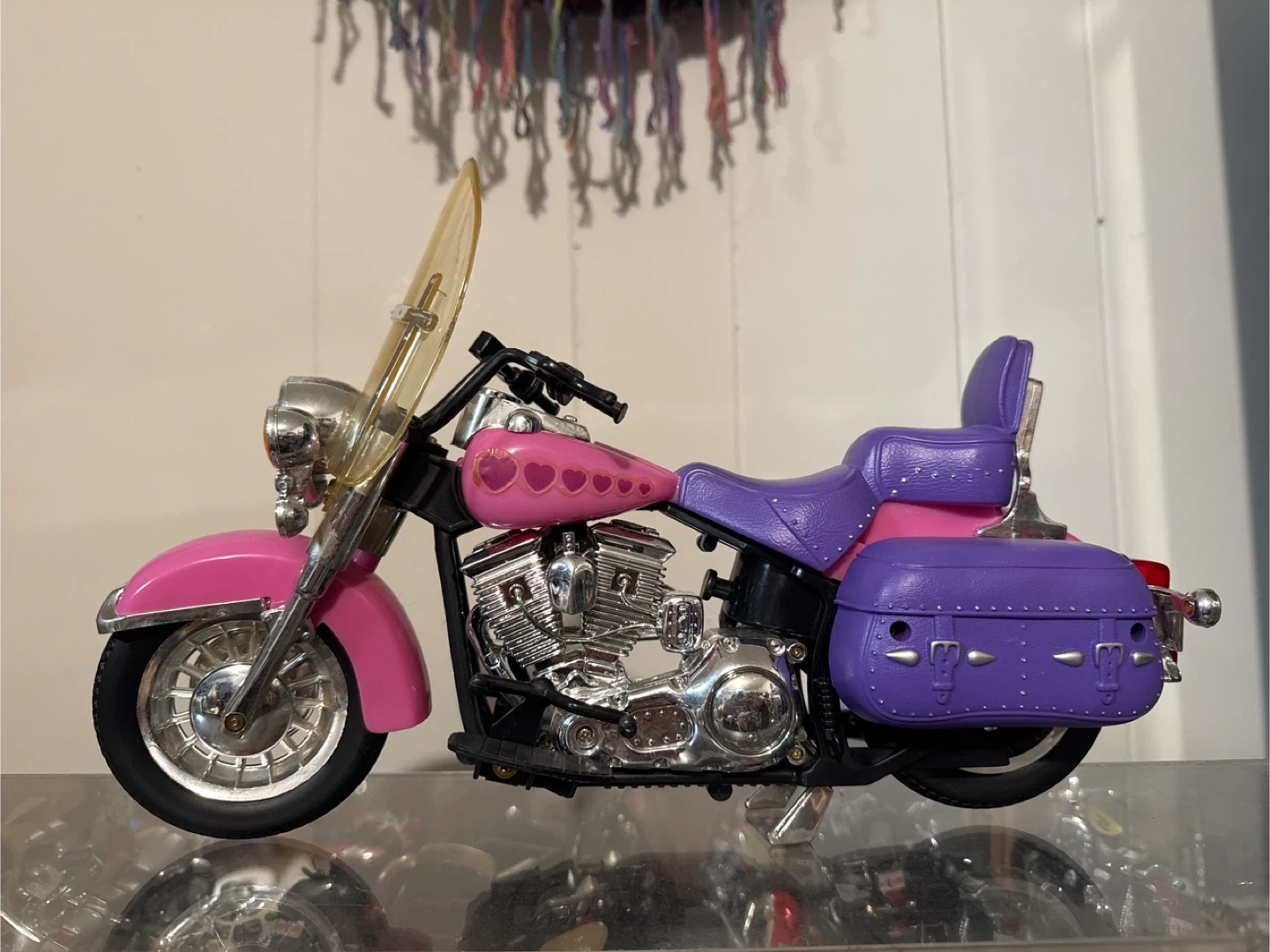 Valentines Sale! Pink/Purple Toy Motorcycle with Heart Design