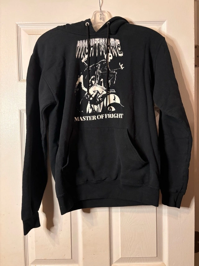 $17 or best offer - Black Nightmare Before Christmas hoodie featuring Jack Skellington with “Master of Fright” graphic on the front. Official Hot Topic piece.