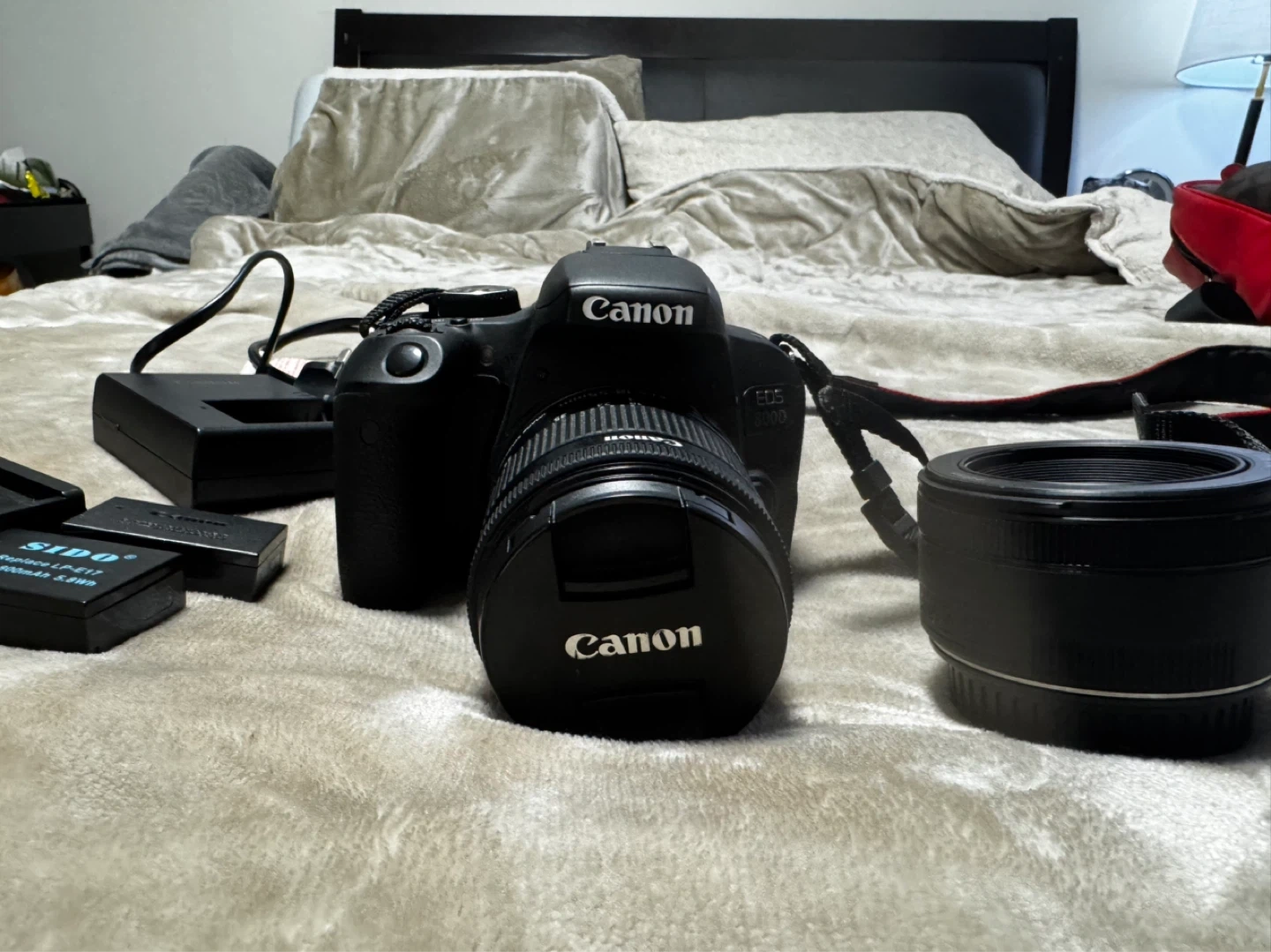 Canon EOS 800D DSLR camera with a Canon EF 50mm f/1.8 STM lens. Includes 2 chargers and 2 batteries. Great for aspiring photographers!