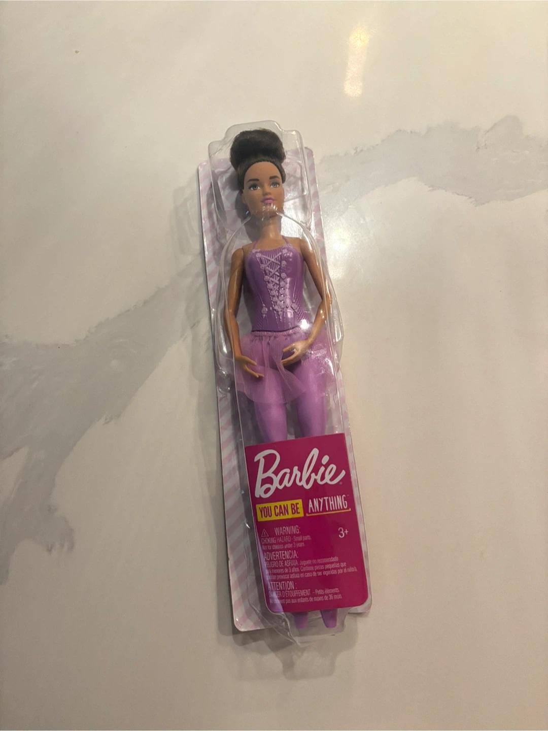 This Barbie doll is dressed as a ballerina. It's part of the "You Can Be Anything" line. Recommended for ages 3 and up.