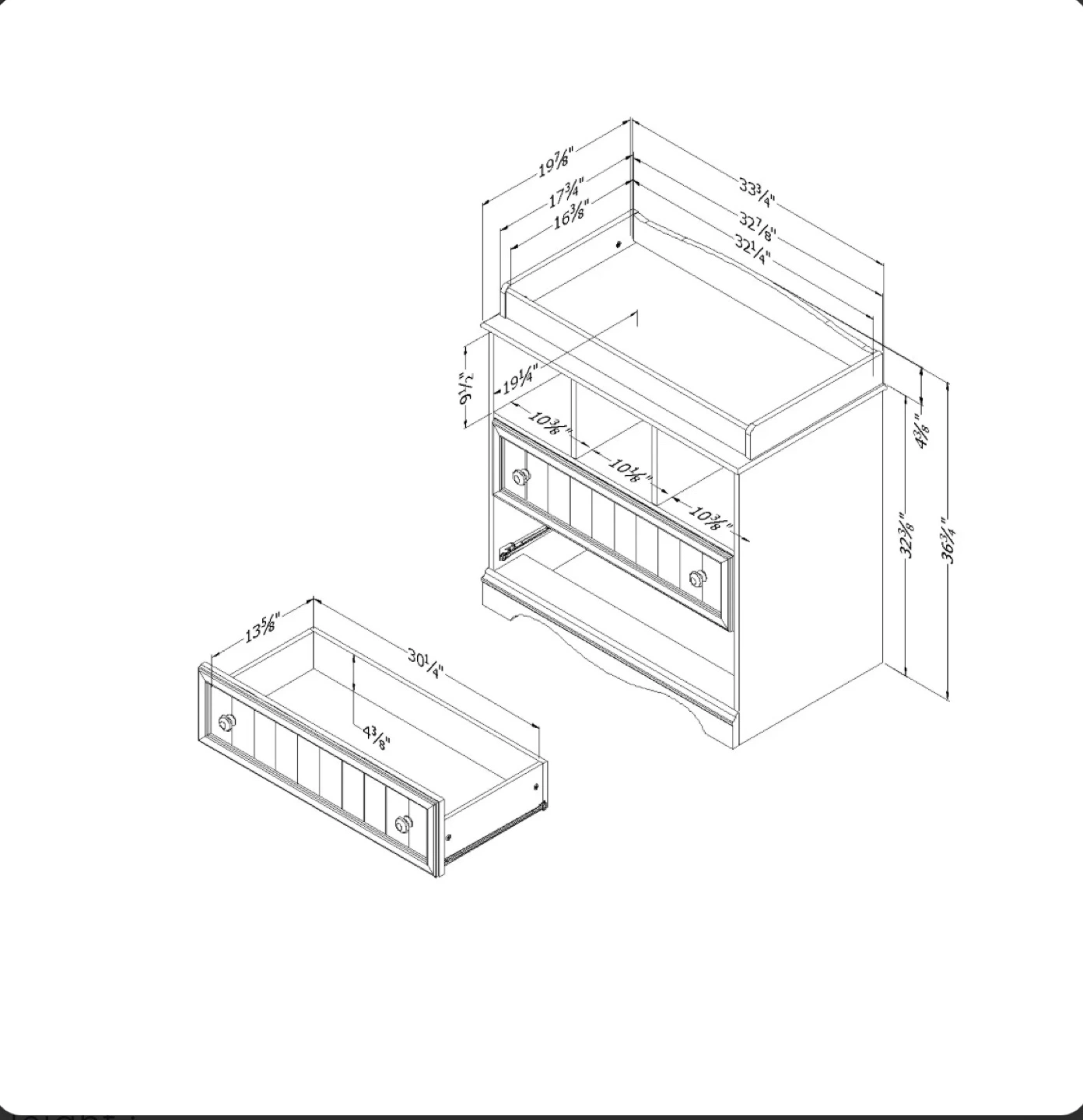 33.75" (W) x 19.75" (D) x 36.75" (H)