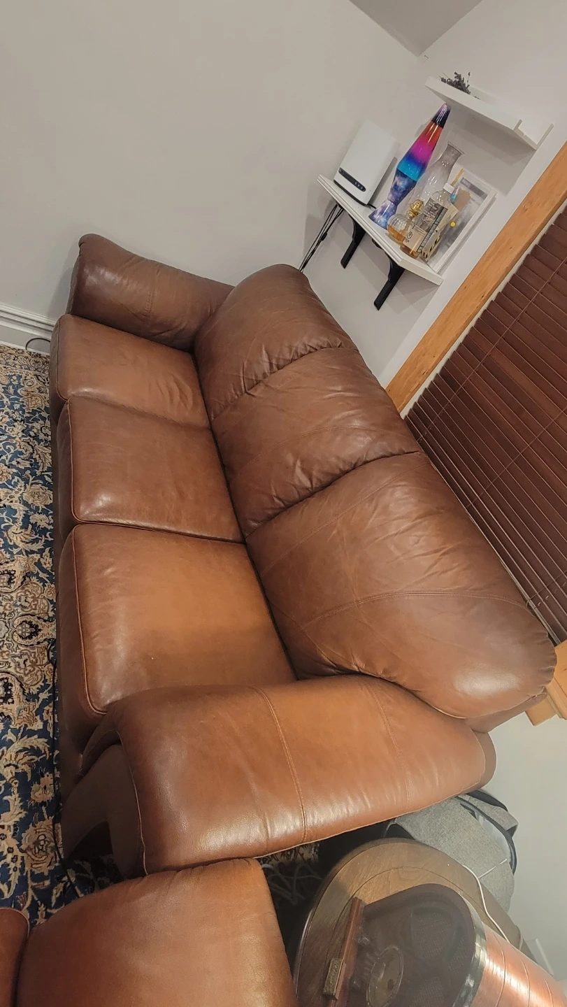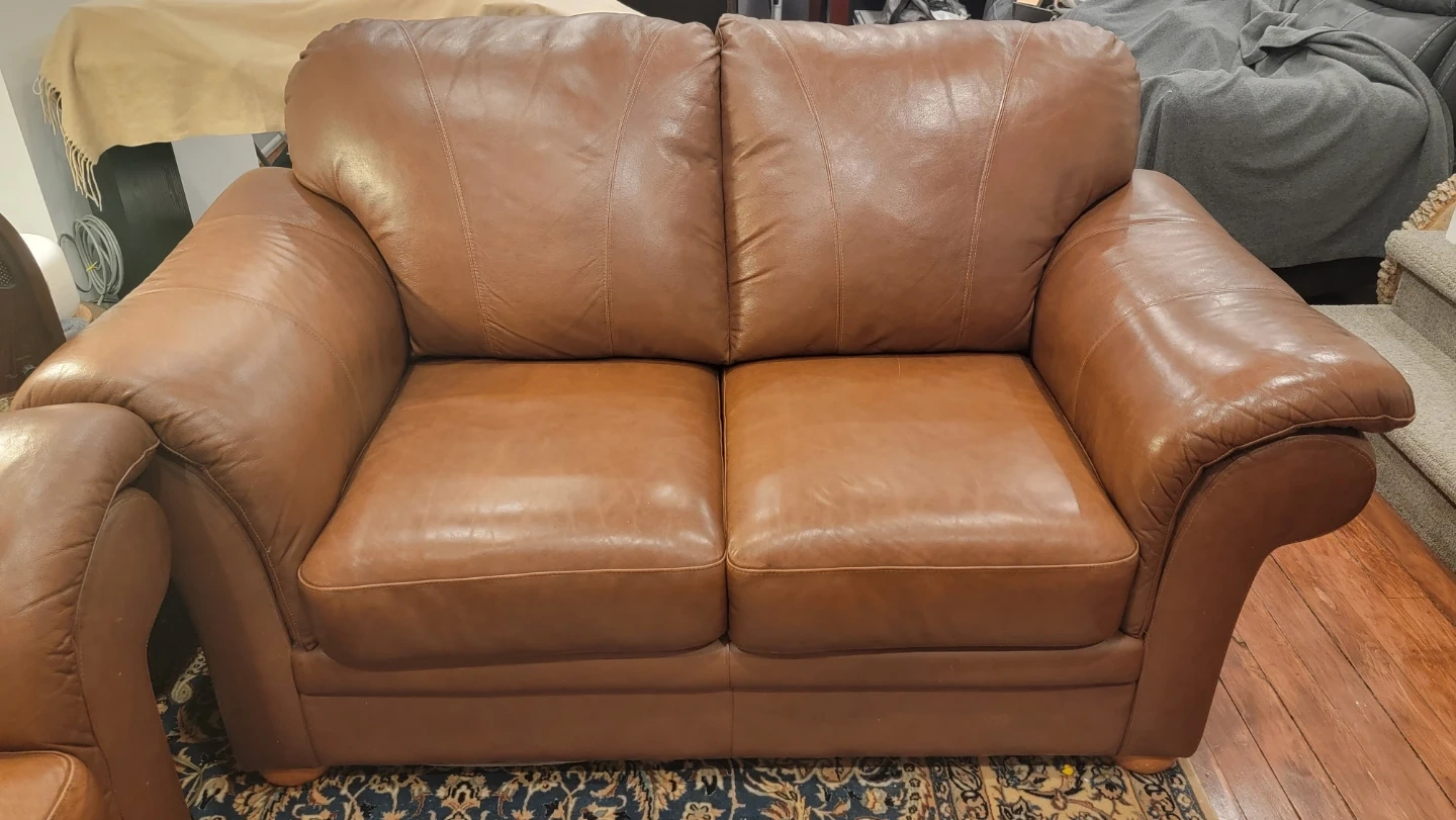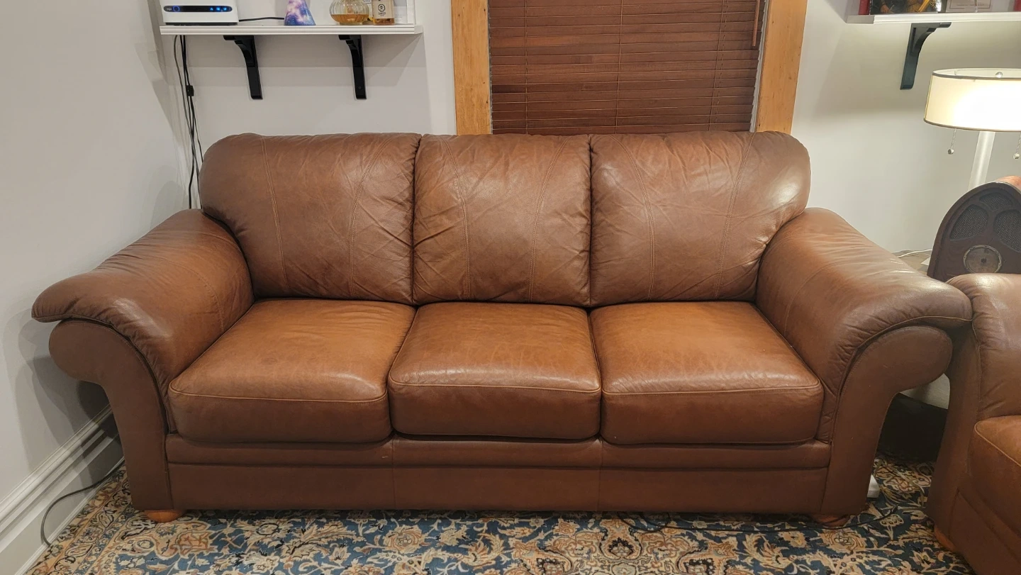 2 piece set (2 seater and 3 seater) of genuine leather couches, very plush like new condition.