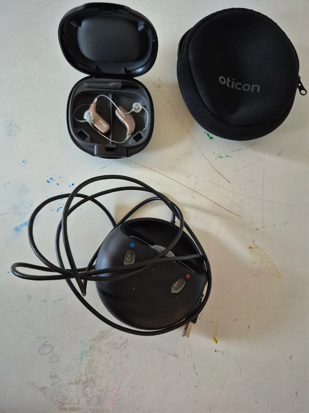 Oticon Hearing Aids with Charger and Case