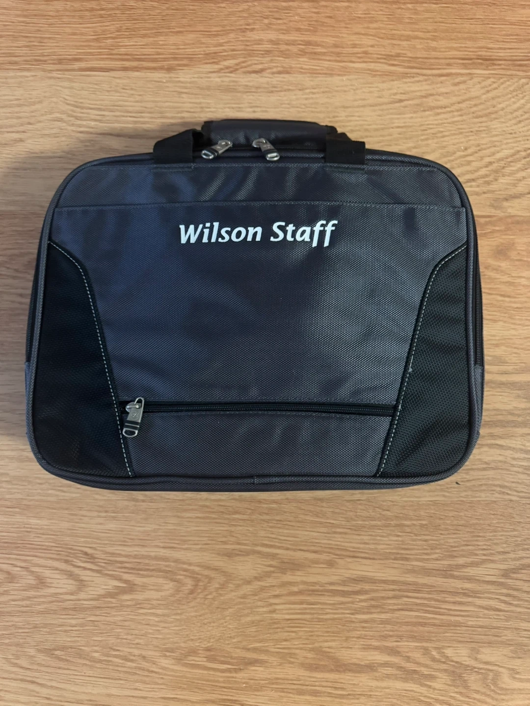 This is a Wilson Staff travel gear/laptop bag with Thornhill Baseball Club logo. It's a durable black bag with red accents and zipper details. It includes multiple compartments for organization.