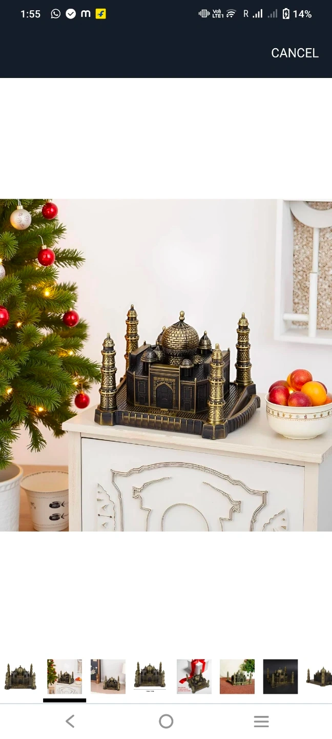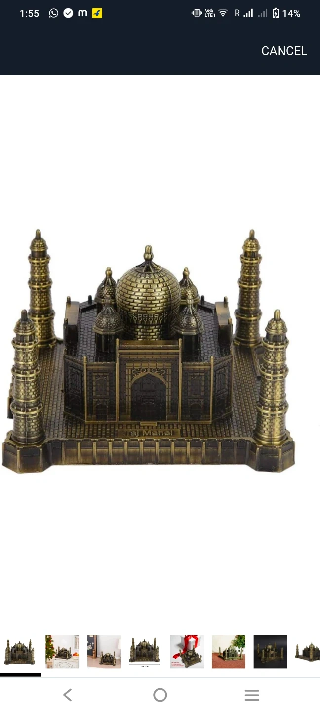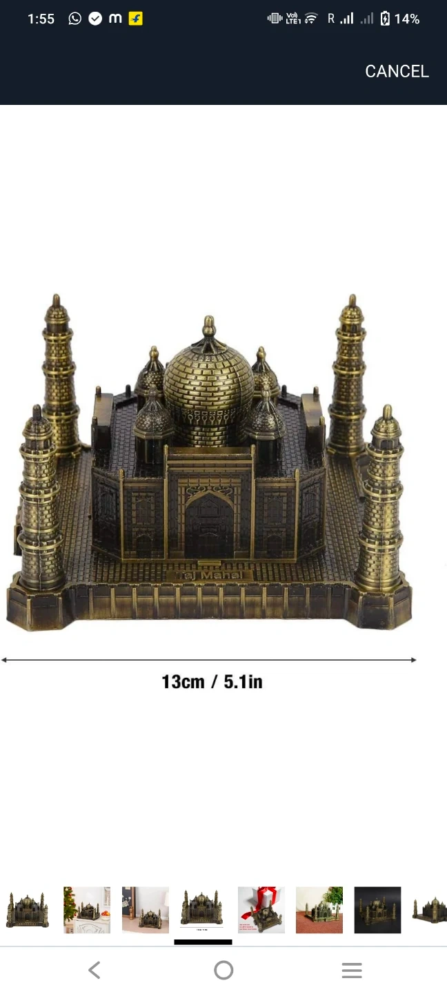 This is a detailed miniature model of the Taj Mahal. It's crafted from metal with an antique bronze finish. The model measures 13cm or 5.1 inches. It's a great decorative piece for any home or office!