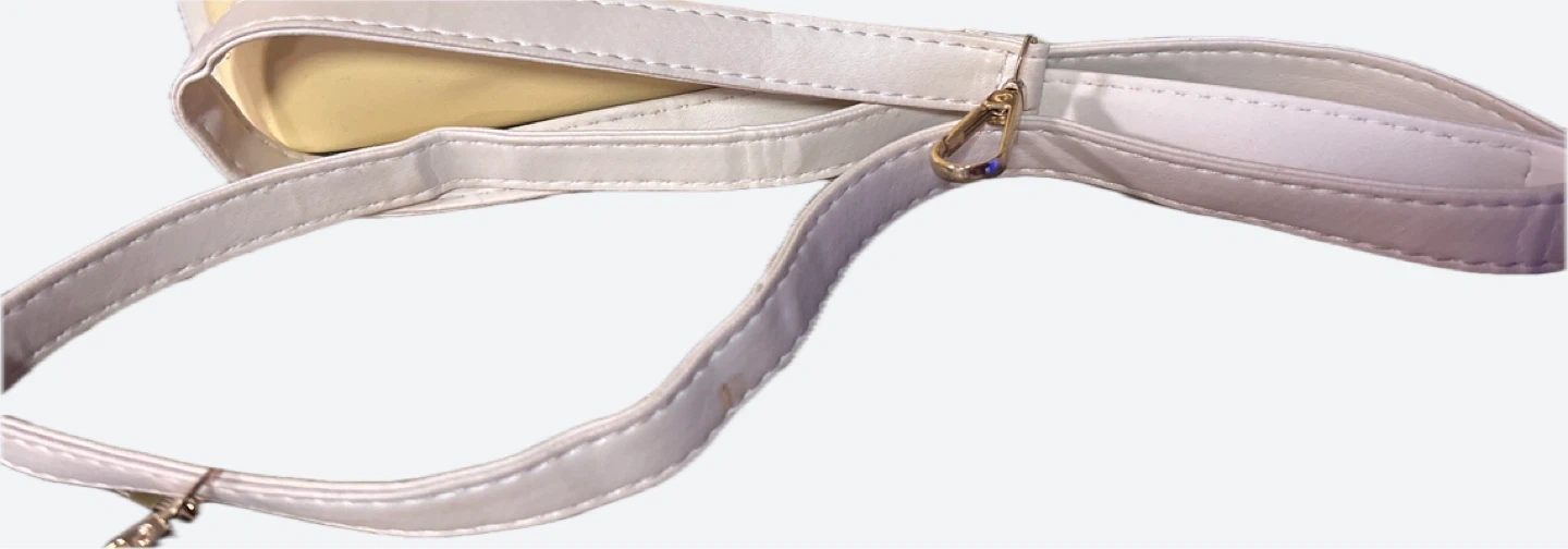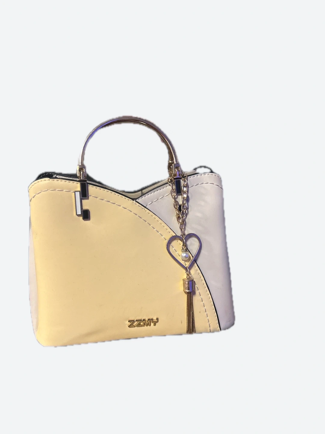 Selling a cute ZZMY satchel bag! It's a two-tone design, cream and yellow color. Has a heart-shaped charm and gold-tone hardware.