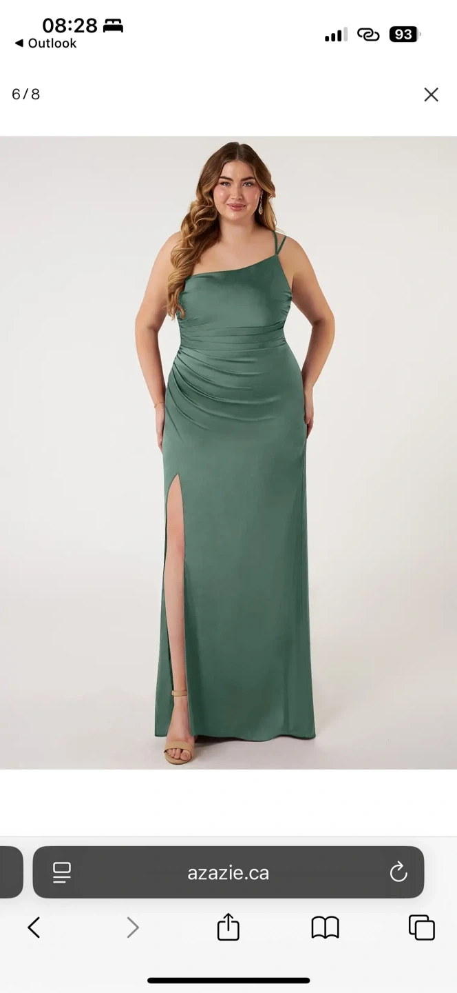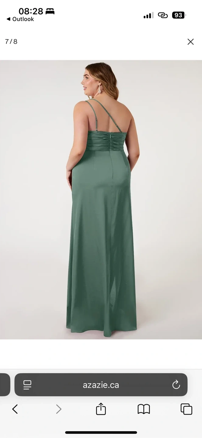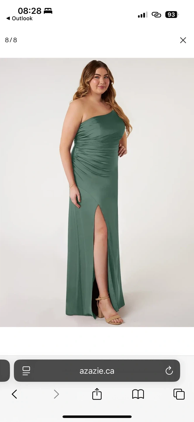 Selling a beautiful Azazie dress in eucalyptus green! It's a one-shoulder style with a flattering silhouette and a slit. Perfect for a wedding or special occasion. Feel free to ask any questions!