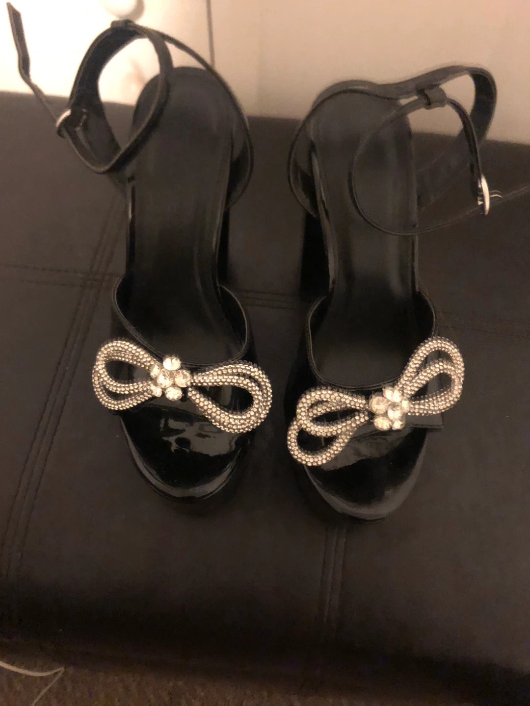 Cute black heels with a bow detail! They're in great condition and ready for a new home. Perfect for dressing up any outfit!