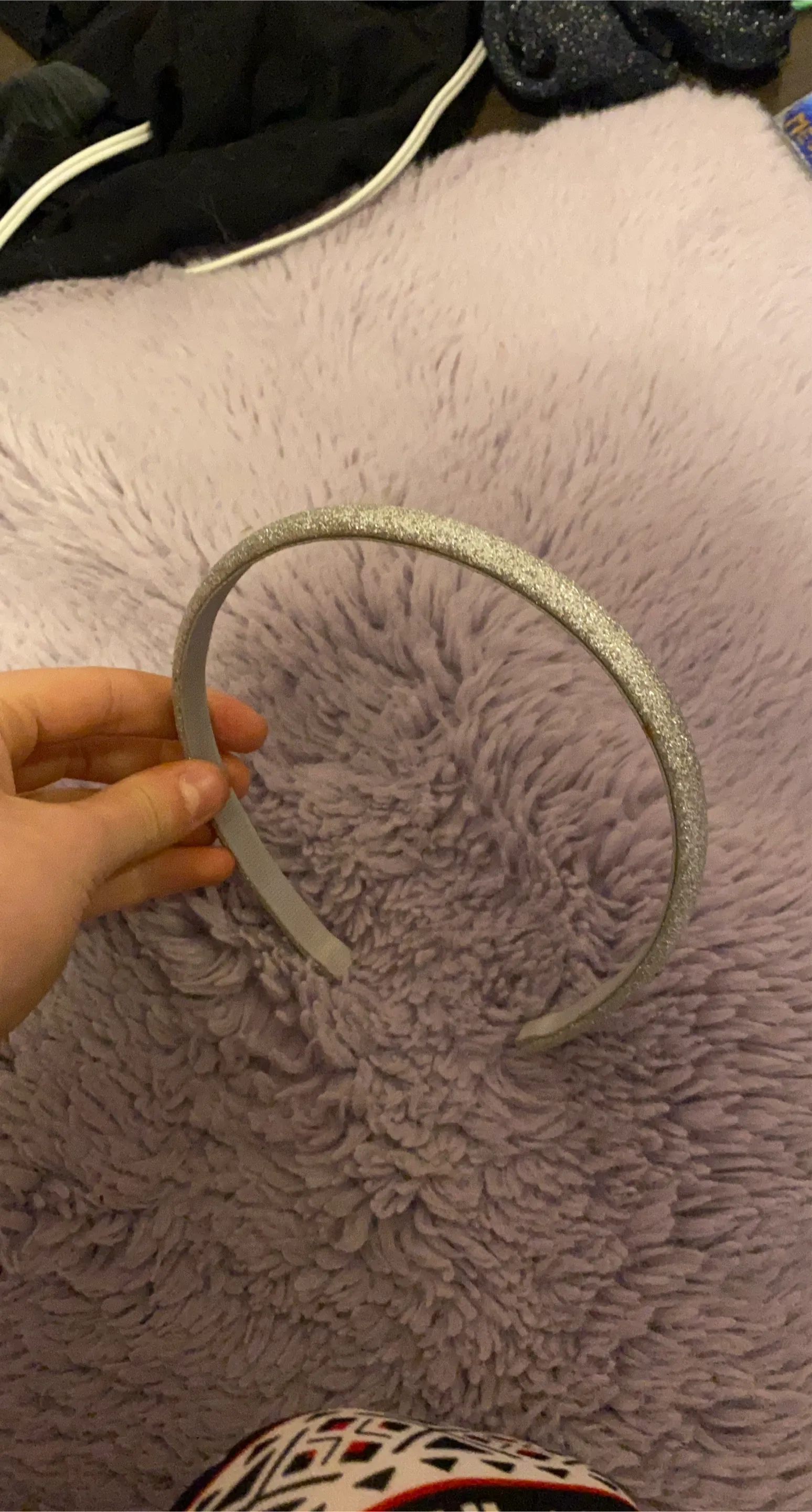 Selling a cute silver glitter headband! It's in great condition and would be a fun accessory for any outfit or special occasion. The glitter adds a touch of sparkle!