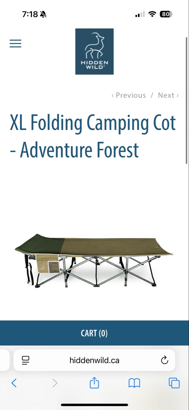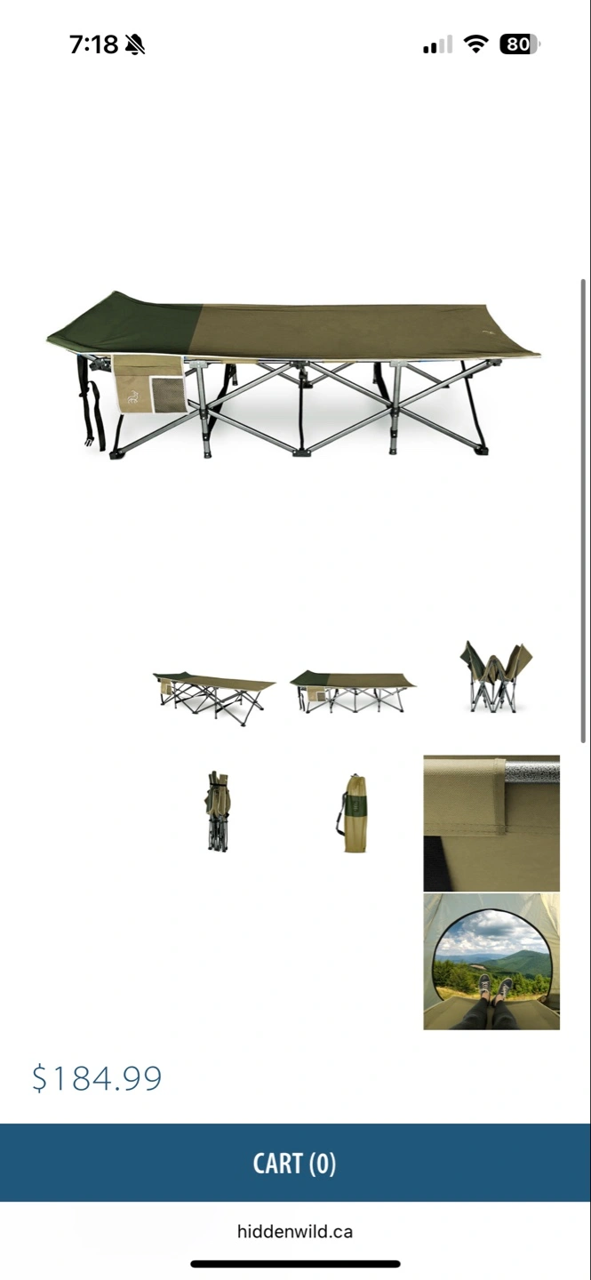 The Hidden Wild® XL Folding Cot is both portable and comfortable and is built for strength and ease-of-use. The size is extra wide to accommodate broad shoulders and comfy slumber. The no-nonsense set-up consists of simply unfolding the cot and pressing it into place. This product is ideal for camping or the backyard and can also be used as an extra guest bed at home.