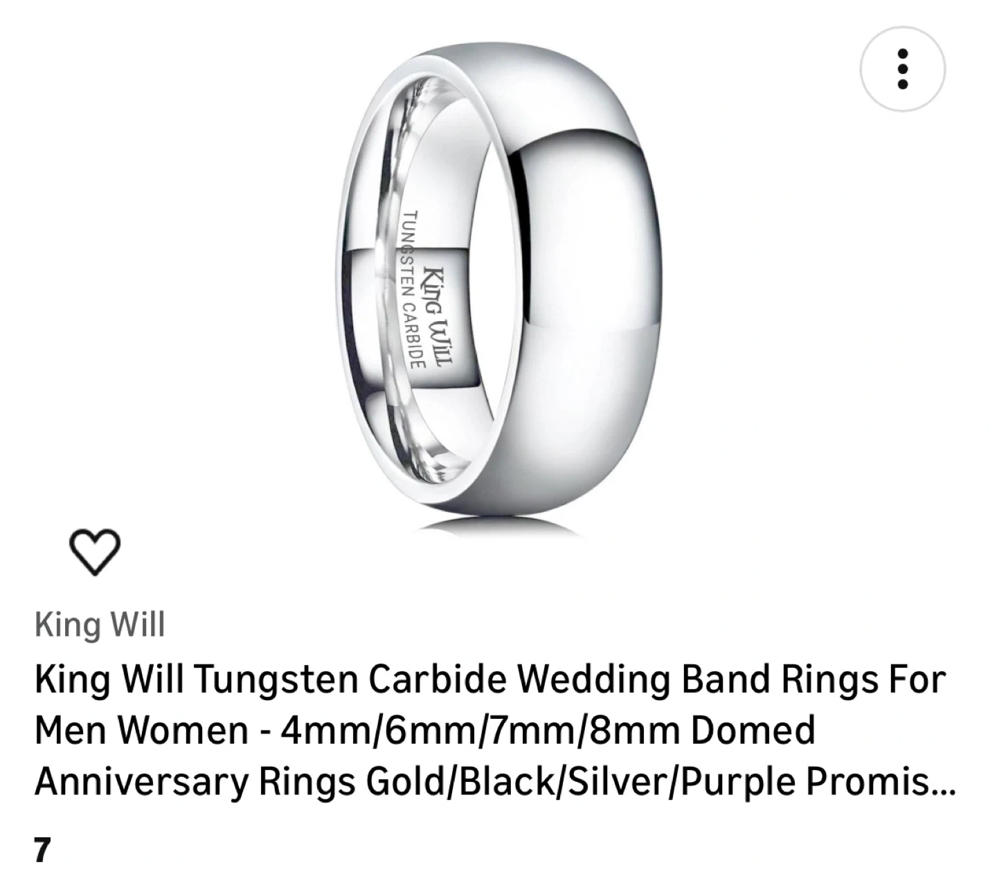 This is a King Will tungsten carbide wedding band. It's a domed ring with a silver finish. Available in multiple widths.