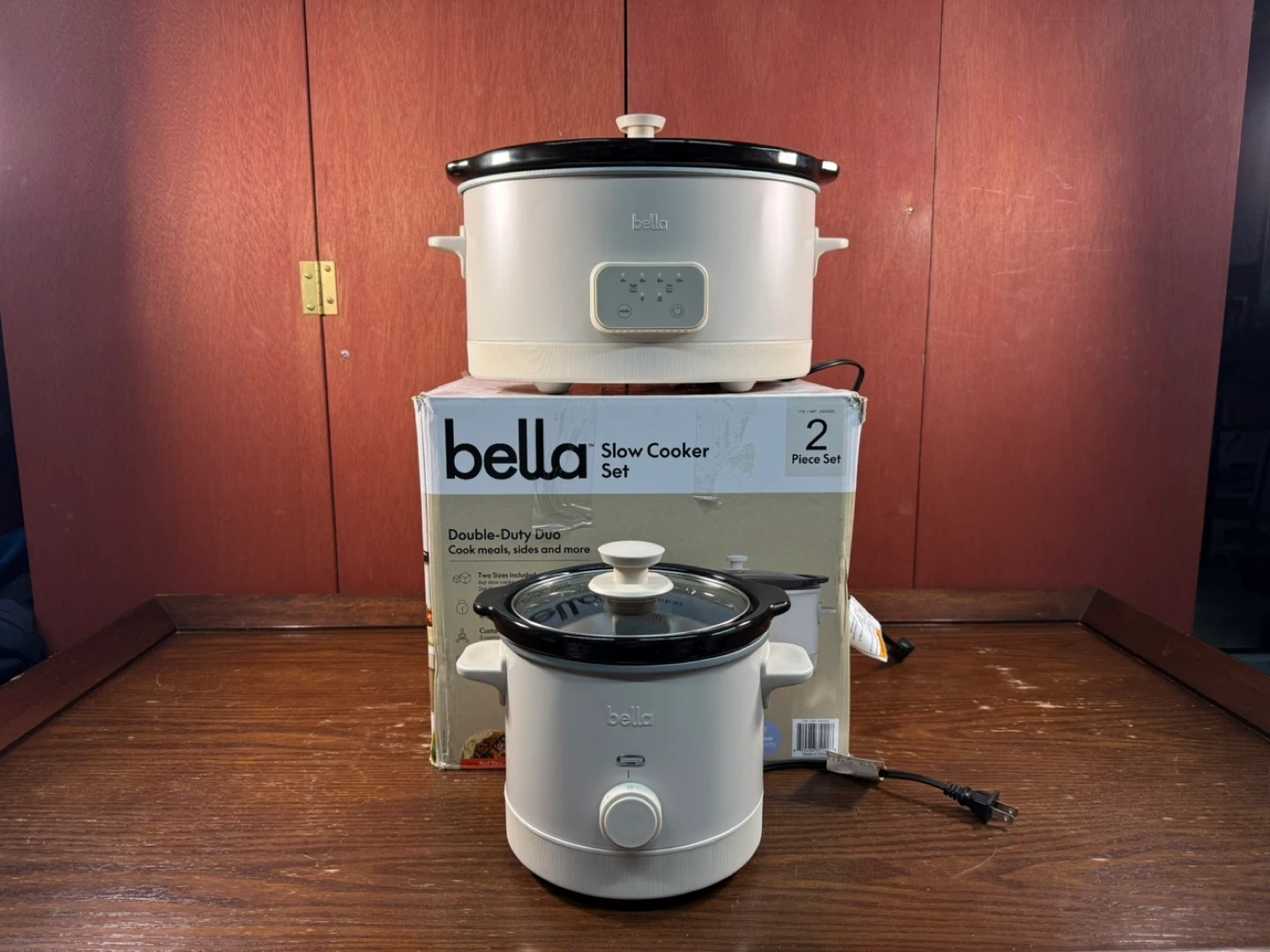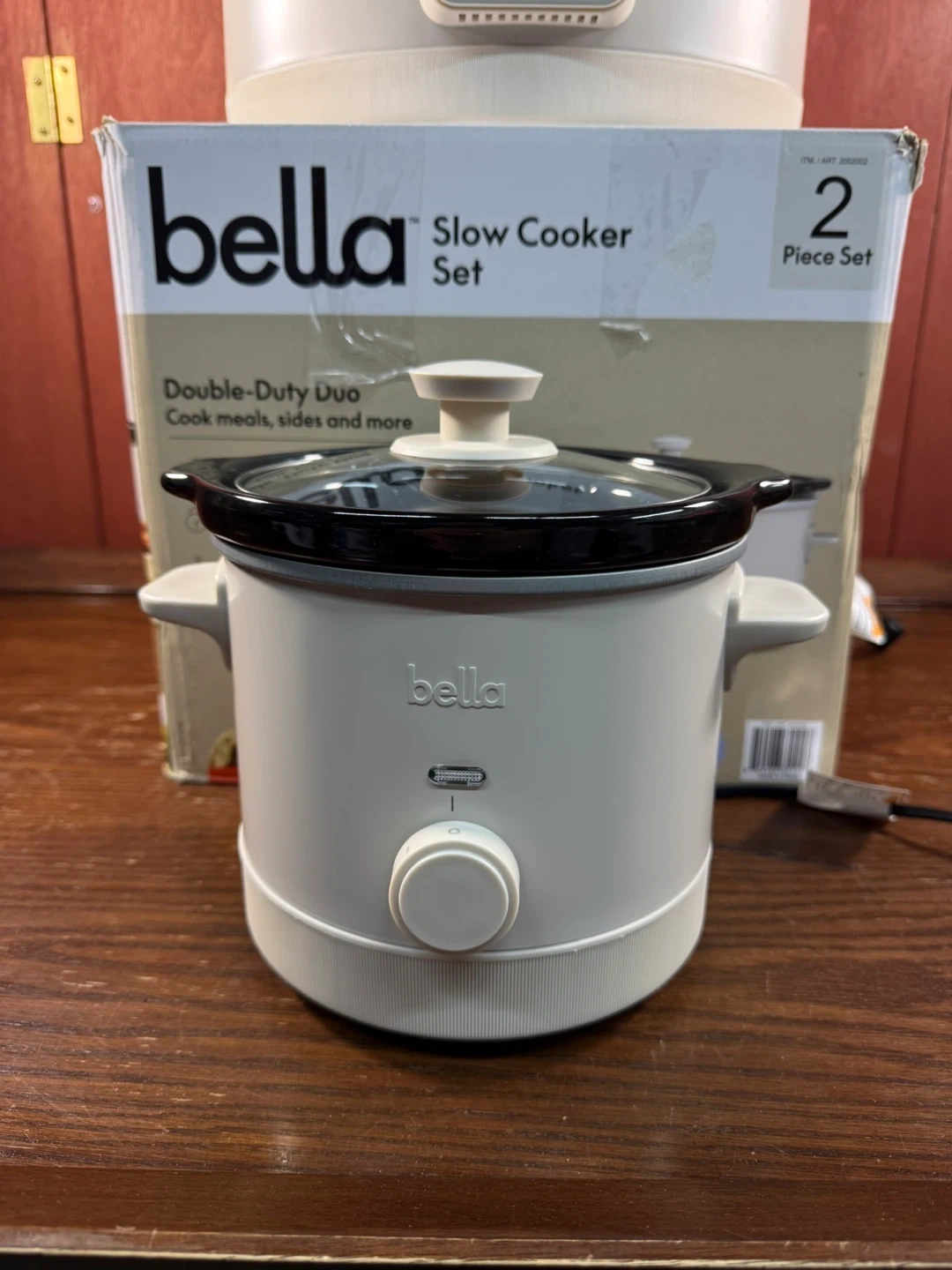 I'm offering a Bella 5.68 L programmable slow cooker and a 1.89 L slow cooker set, perfect for preparing meals of all sizes!