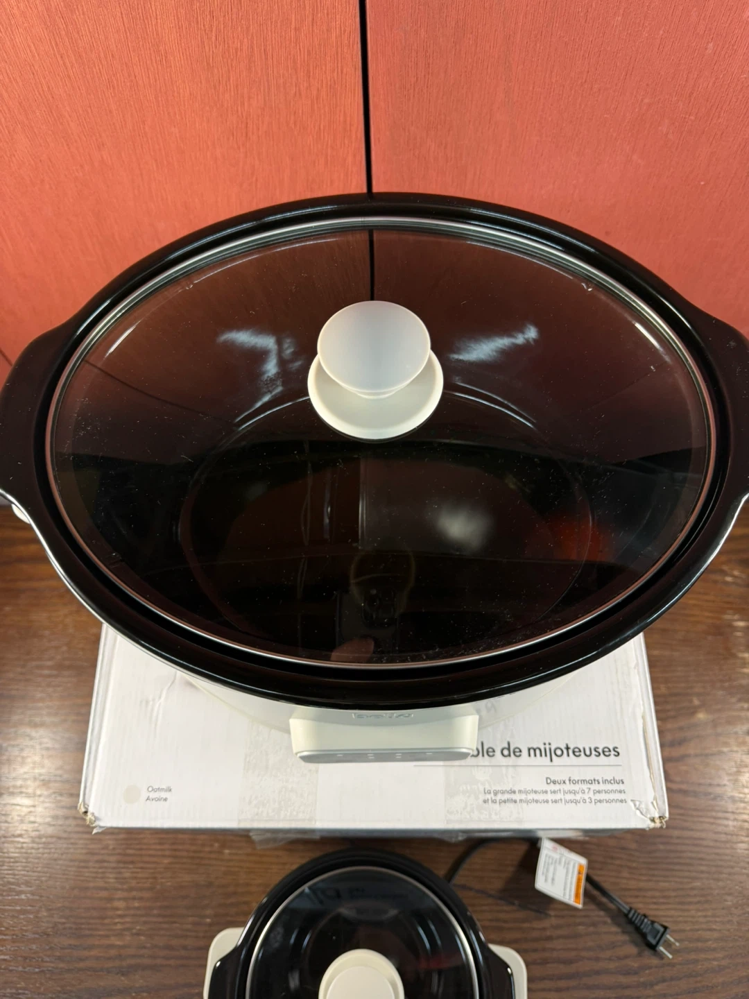 I'm offering a Bella 5.68 L programmable slow cooker and a 1.89 L slow cooker set, perfect for preparing meals of all sizes!