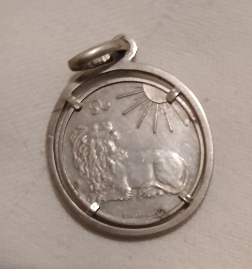 Vintage sterling silver coin pendant featuring a scene of Apollo driving a chariot, designed by the Italian medalist Pietro Giampaoli.