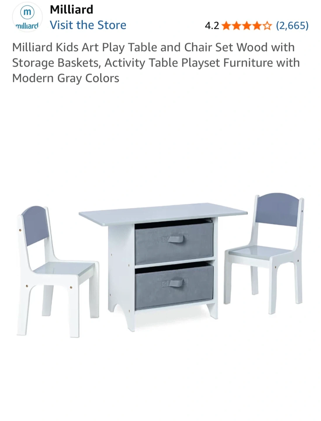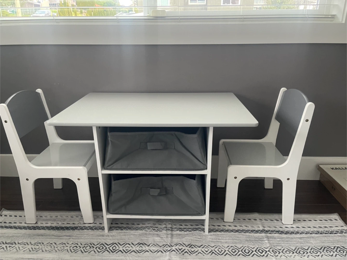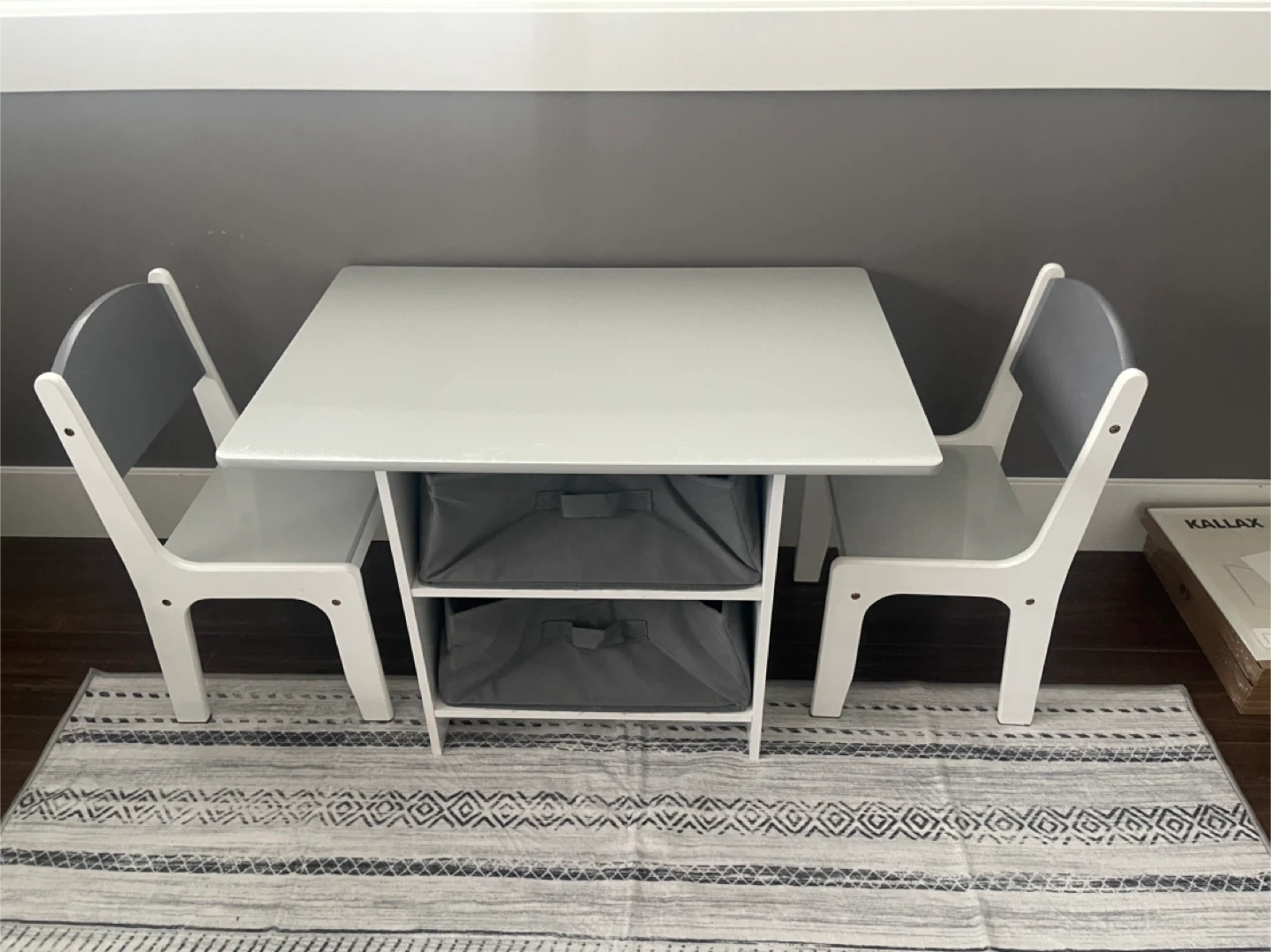 1 / 41 / 4Buy & SellWooden Kids Table & ChairsWooden Kids Table & Chairs$40Kids table and chairs Wooden Grey and white Great condition Cash onlyWHERE TO MEETWest HeightsView MapSELLERTaraWest Heights453 reviews0 chats·0 favorites·17 viewsSEND CHAT TO SELLERHi Tara! I’m interested in your listing.Hi Tara! I’m interested in your listing.Get the Karrot app to chatSign In to chat