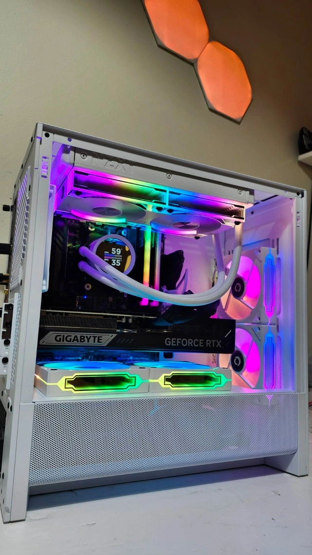 Powerful custom gaming PC with a clean white design! This machine is ready to handle games like Arc Raider, CSGO, GTA 5, and any AAA title at 2K high settings. It's plug and play with Windows 11 and all drivers pre-installed. Features Wi-Fi 6, Bluetooth, and smart RGB lighting control. Raytracing and VR ready. You can test the PC before purchasing. Specs: Ryzen 7 7700 CPU, NZXT Kraken 240 RGB cooler, ASUS TUF A620M WIFI 6 motherboard, 32GB DDR5 5200Mhz RAM, 1TB m.2 Gen 4 NVMe SSD, Gigabyte RTX 5070 Ti 16GB GPU, Corsair RMX 850W Gold PSU, NZXT H3 FLOW case.