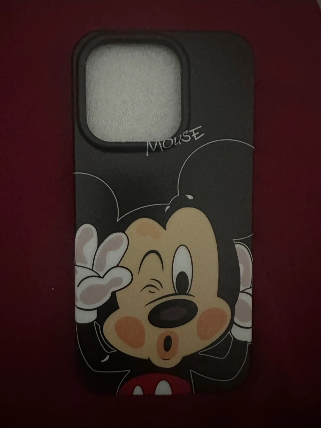 Selling a cute Mickey Mouse phone case designed for the iPhone 14 Pro. Features a playful design of Mickey Mouse winking. The case comes in its original packaging. Protects your phone in style!