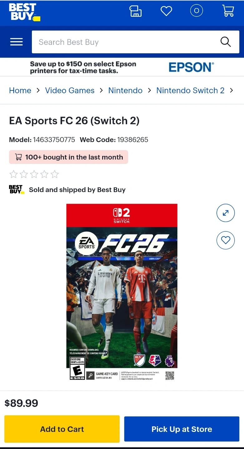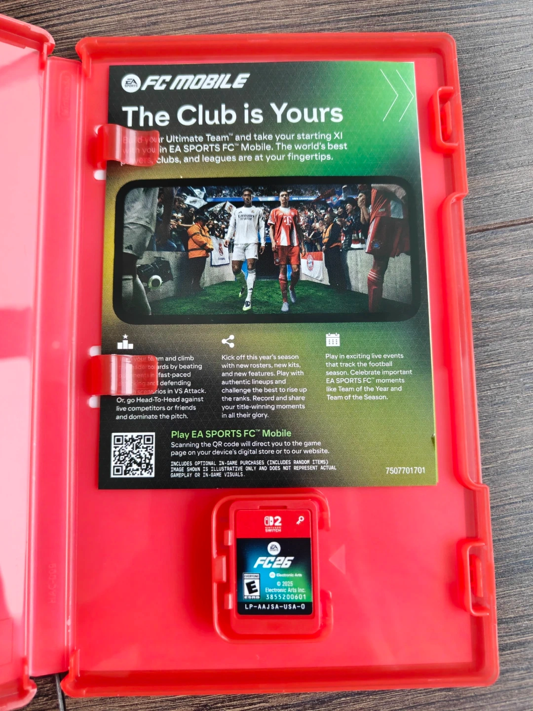 EA Sports FC 26 for the Nintendo Switch 2. Build your ultimate team and manage your club. It's a football simulation game featuring real-world leagues and players. Compete in live events and challenge opponents.