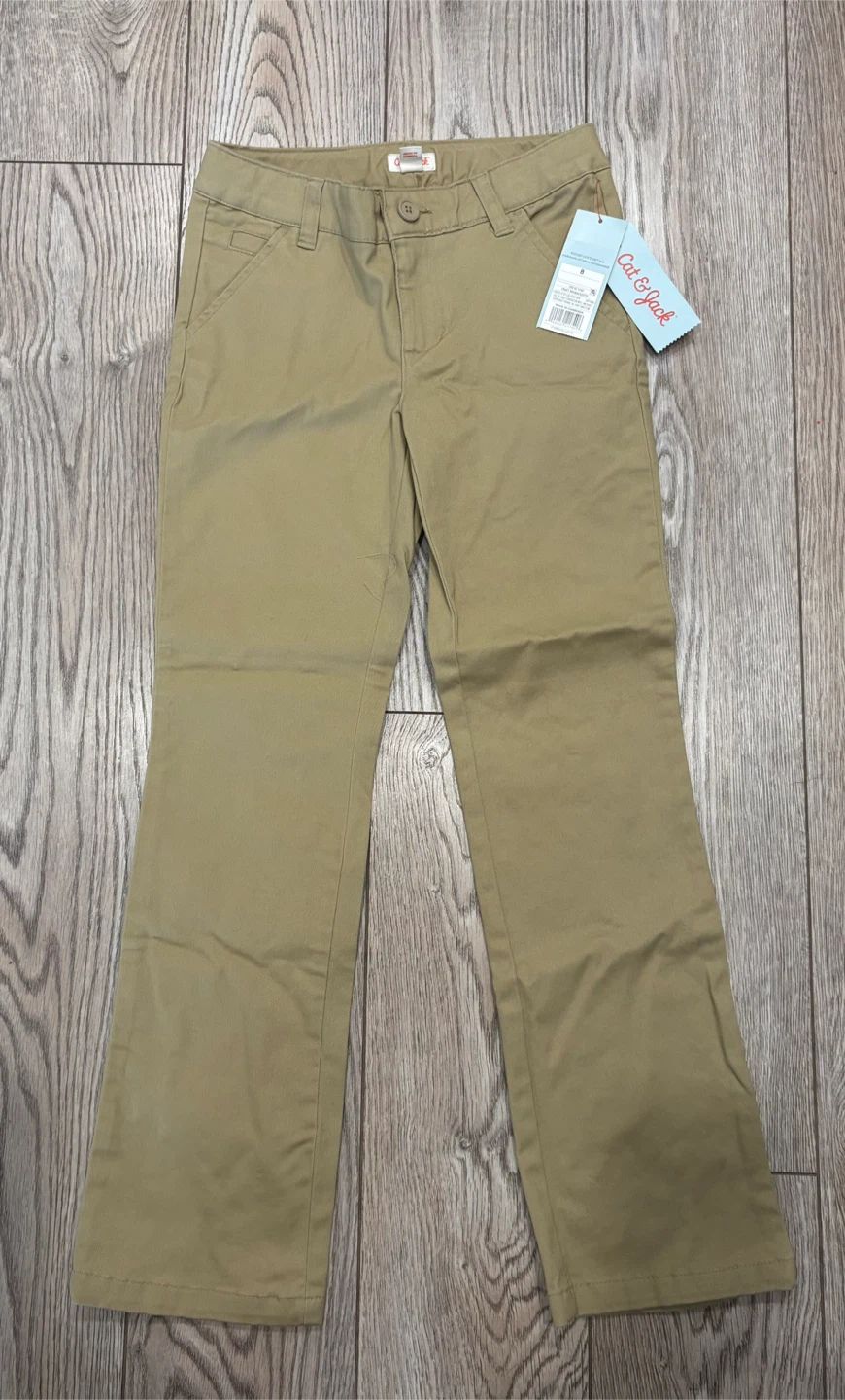 These Cat & Jack girls' bootcut pants are a size 8. They feature an adjustable waist and stretch fabric for comfort. Perfect for school or everyday wear!
