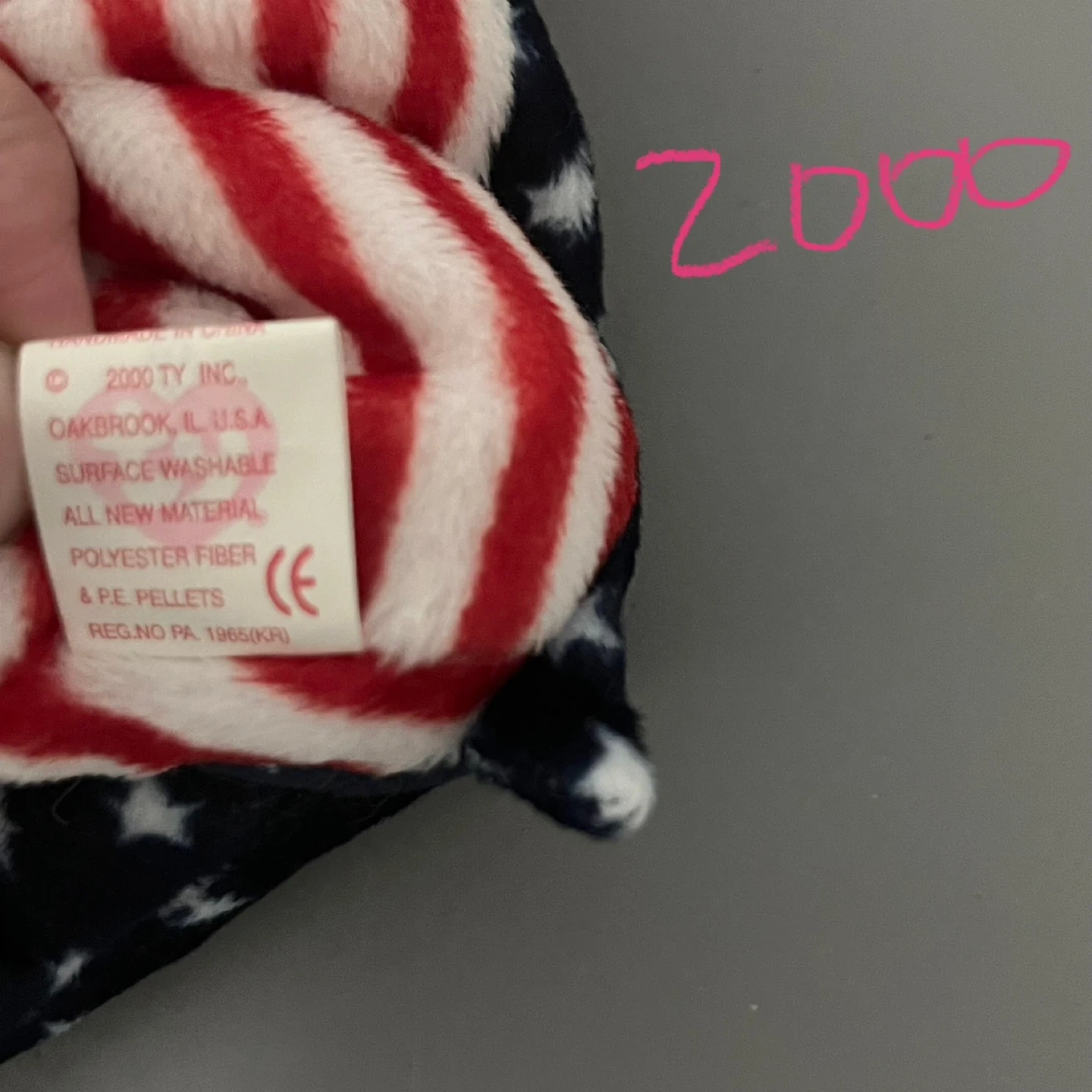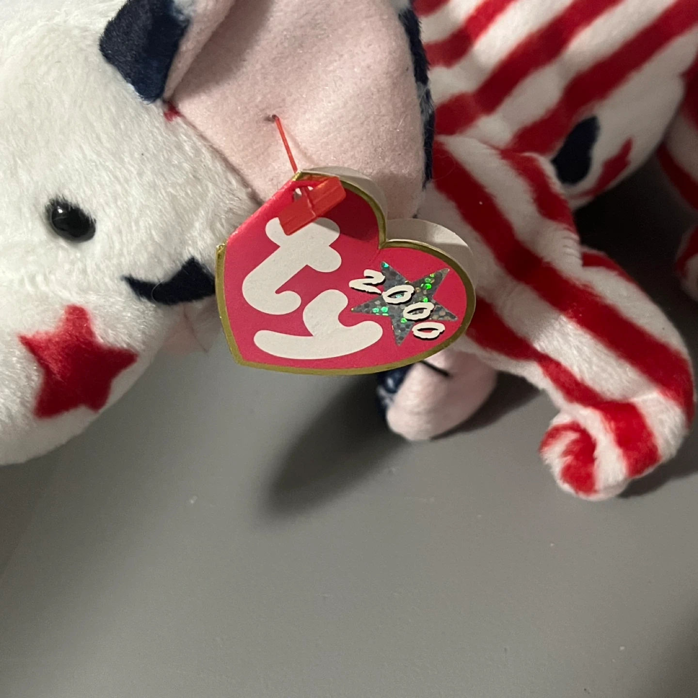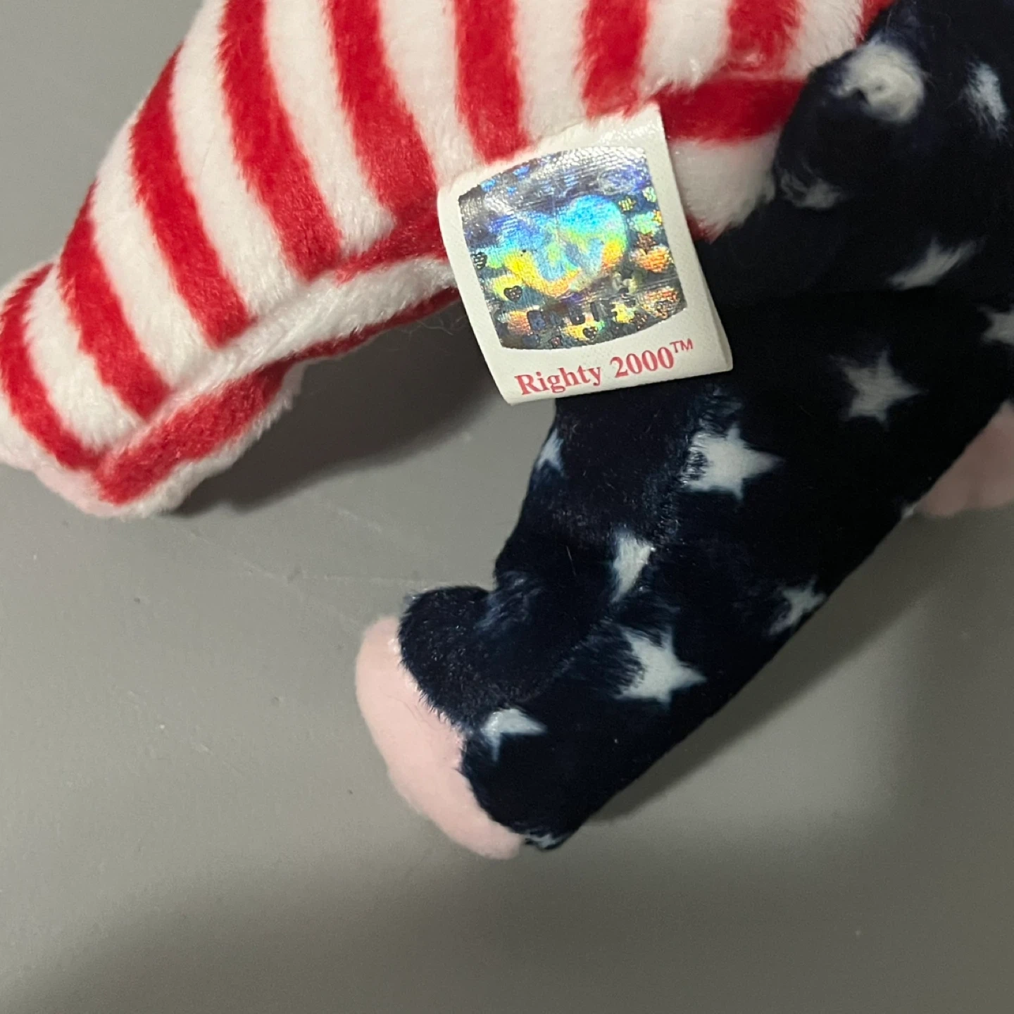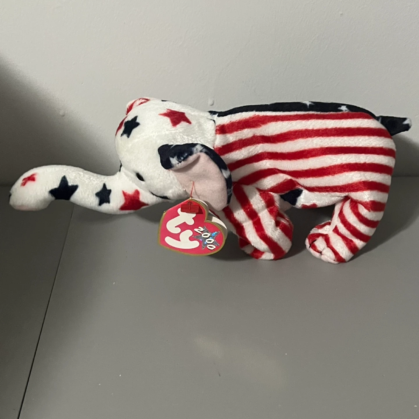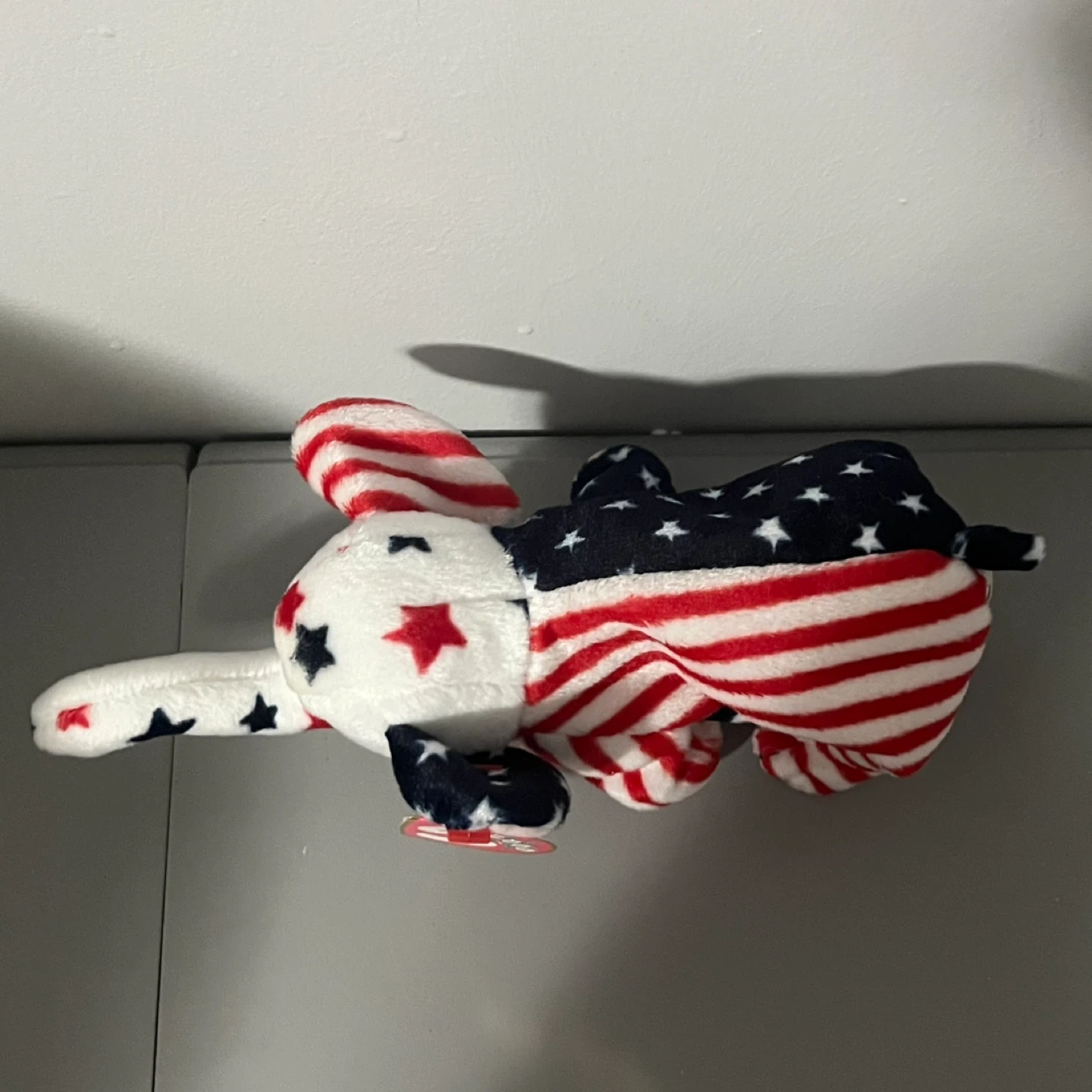 Here's a Ty Beanie Baby named Righty the Elephant! It features a unique design with stars and stripes. It's in great condition and would make a lovely addition to any collection!