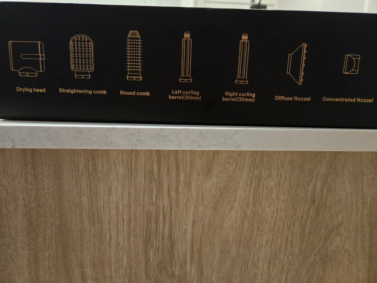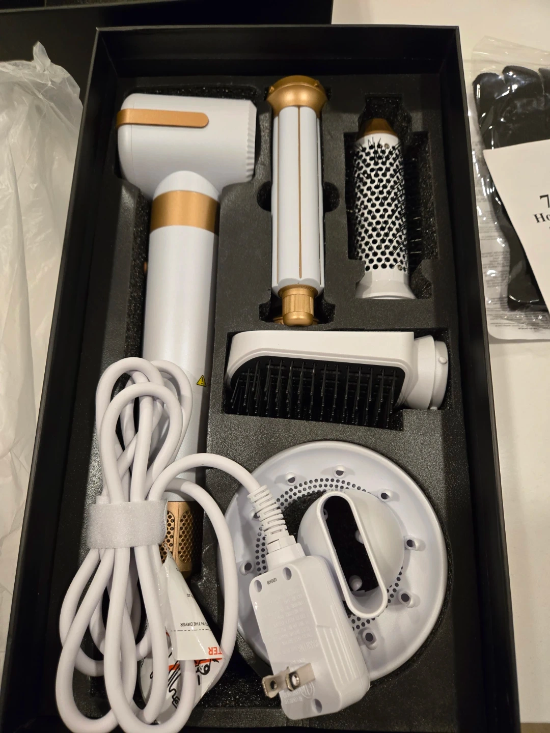 This styling set includes a hair dryer with a drying head, straightening comb, round comb, and 30mm curling barrels. It also comes with a diffuse nozzle and concentrated nozzle. Get salon-quality styling at home!