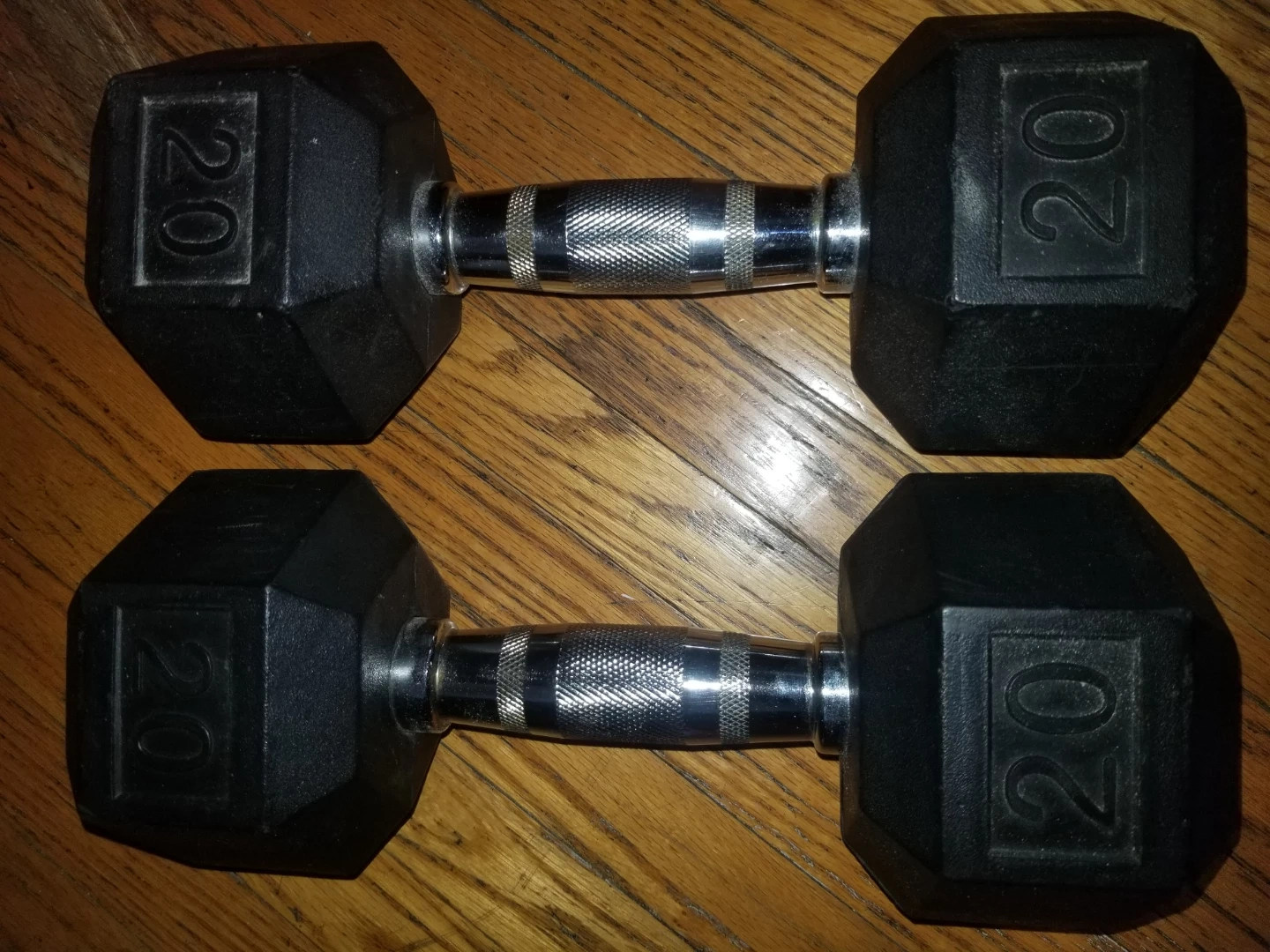 Buy & SellPair of 20lb Hex DumbbellsPair of 20lb Hex Dumbbells$40Selling a pair of 20lb hex dumbbells. They have rubber-coated heads and knurled steel handles. Great for home workouts!ConditionLike newWHERE TO MEETHomeView MapSELLERverifiedAshtonVictoria Village650 reviews1 chats·0 favorites·12 viewsSEND CHAT TO SELLERHi Ashton! I’m interested in your listing.Hi Ashton! I’m interested in your listing.Get the Karrot app to chatSign In to chat